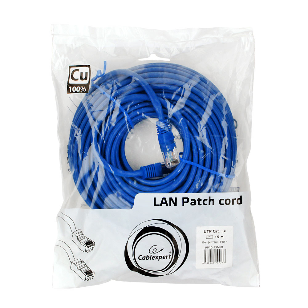 Патч-корд Cablexpert PP10-15M/B, синий Cable Patch cord UTP 5e-Cat 15 m