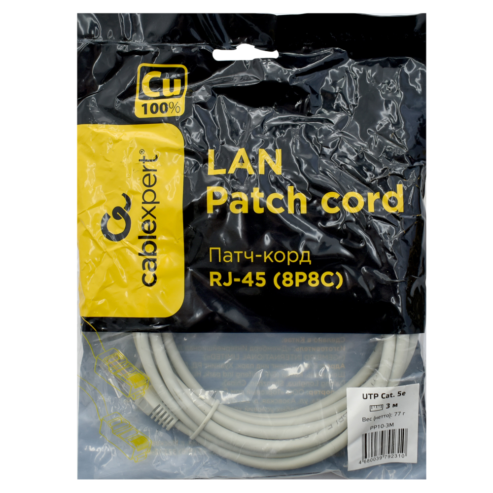 Патч-корд Cablexpert PP10-3M, серый Cable Patch cord UTP 5e-Cat 3 m