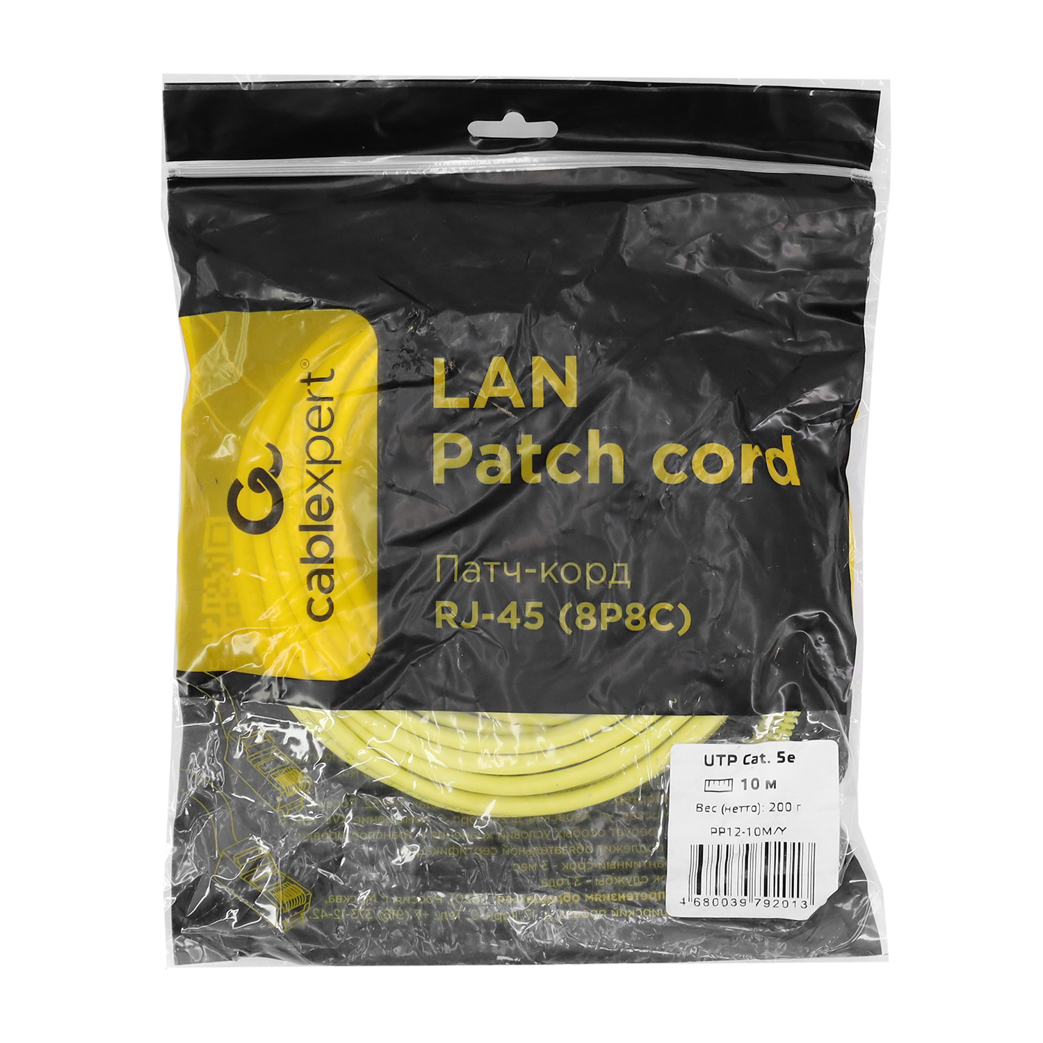 Патч-корд Cablexpert PP12-10M/Y, желтый Cable Patch cord UTP 5e-Cat 10 m