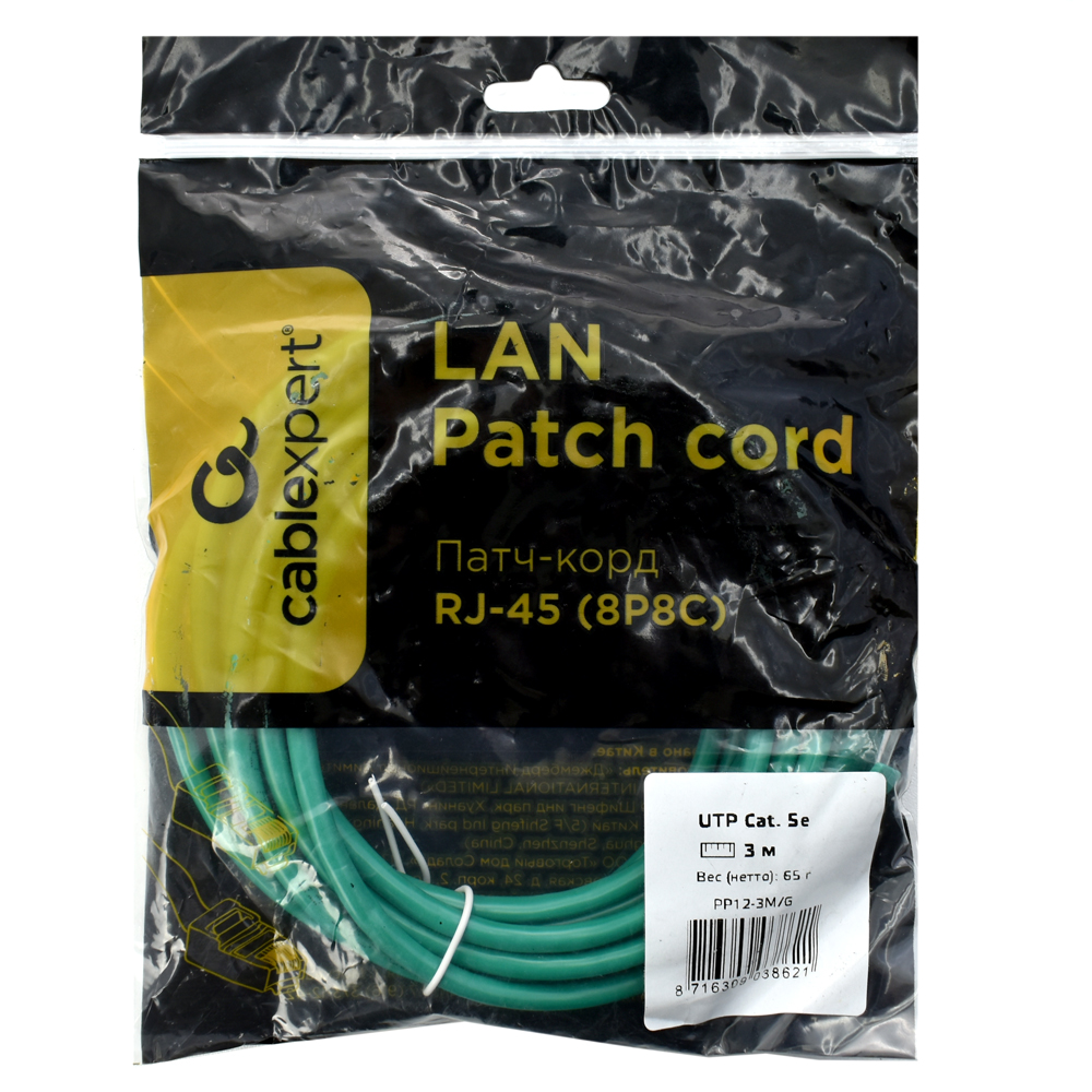 Патч-корд Cablexpert PP12-3M/G, зеленый