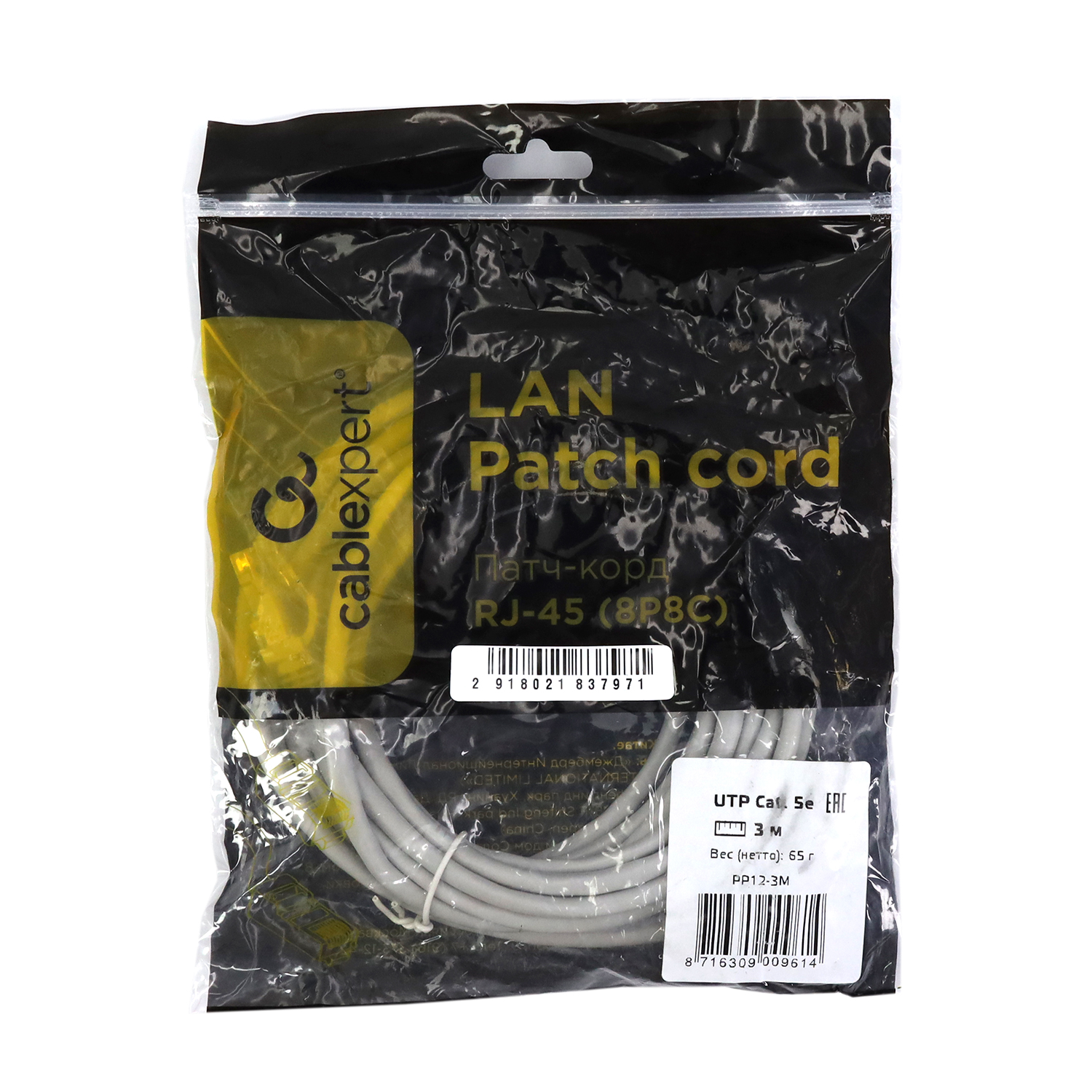 Патч-корд Cablexpert PP12-3M, серый Cable Patch cord UTP 5e-Cat 3 m