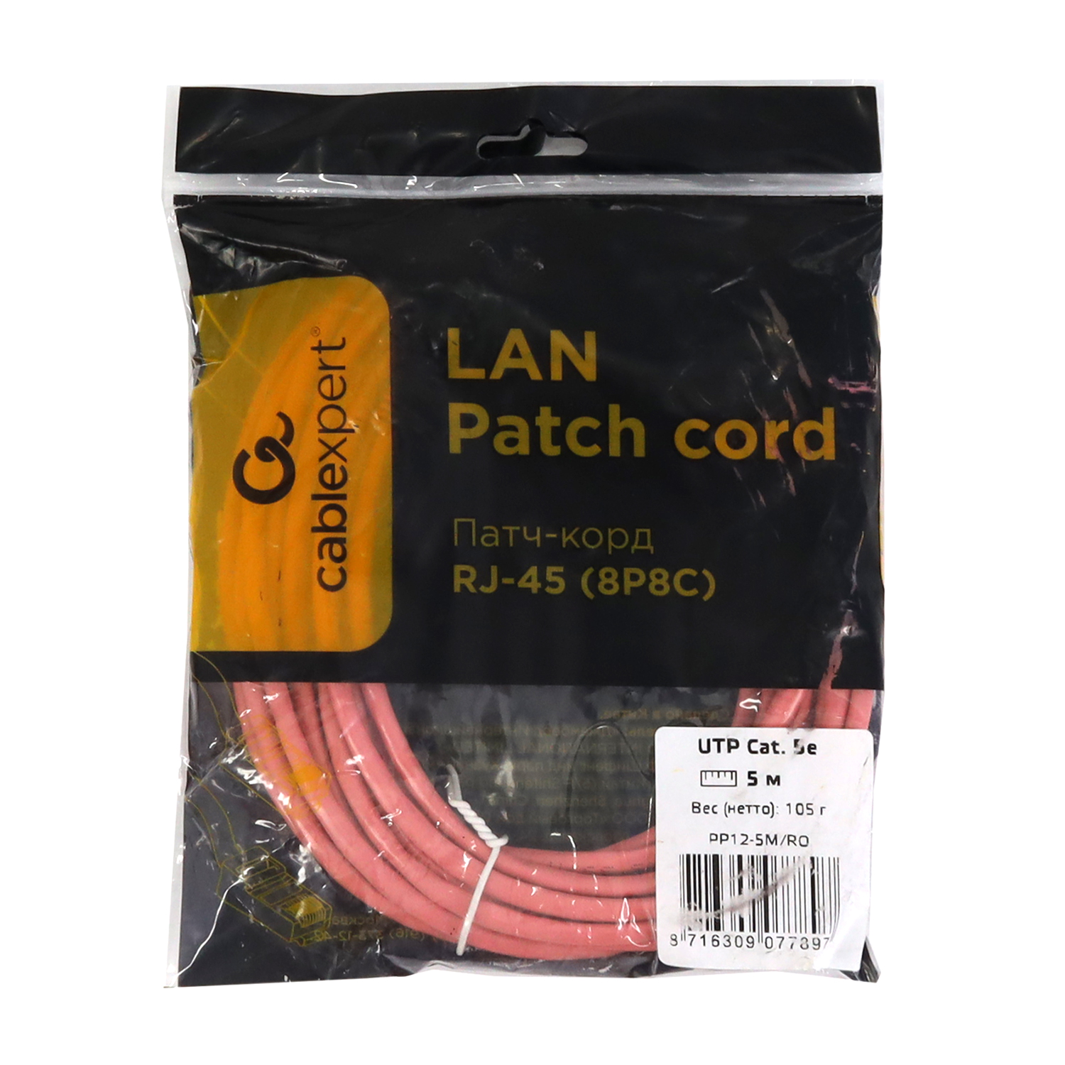 Патч-корд Cablexpert PP12-5M/RO, розовый Cable Patch cord UTP 5e-Cat 5 m
