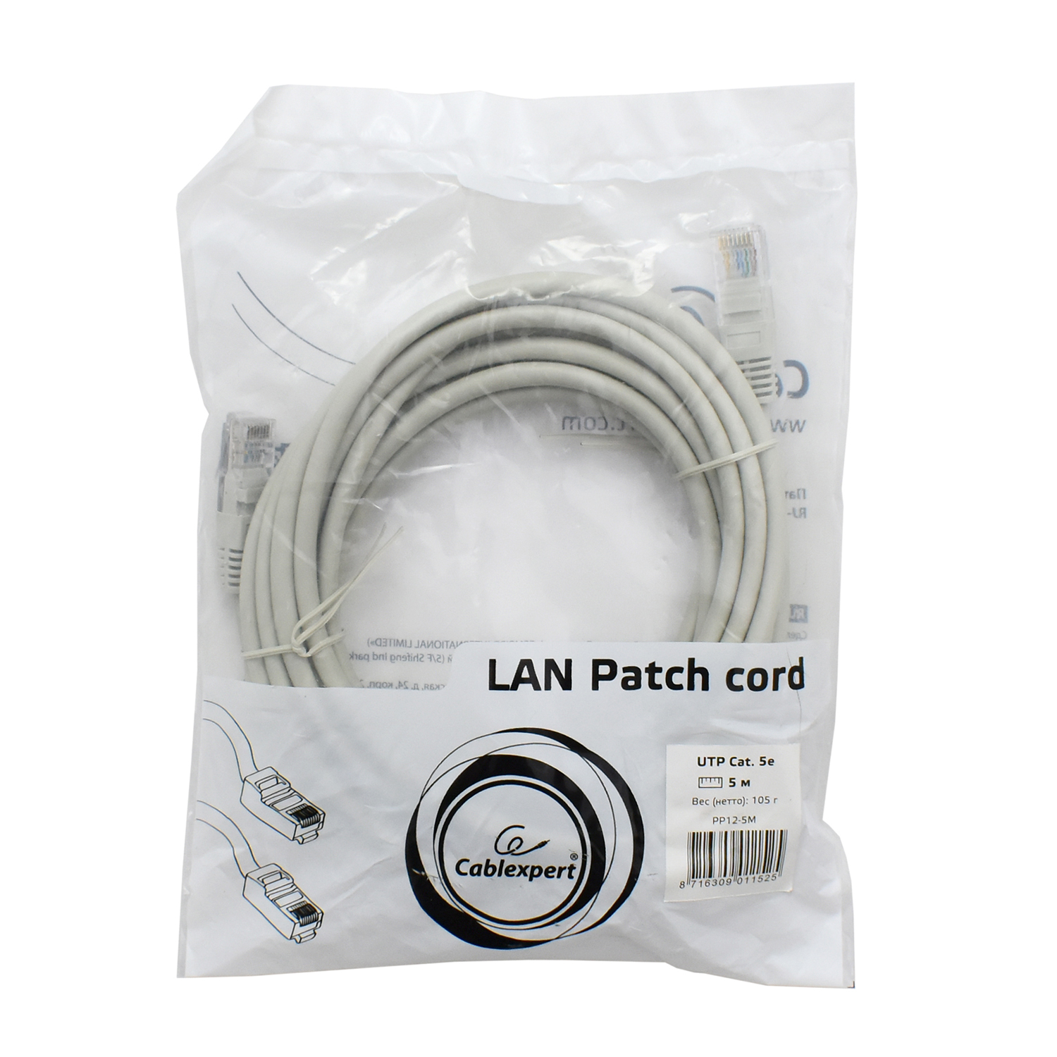 Патч-корд Cablexpert PP12-5M, серый Cable Patch cord UTP 5e-Cat 5 m