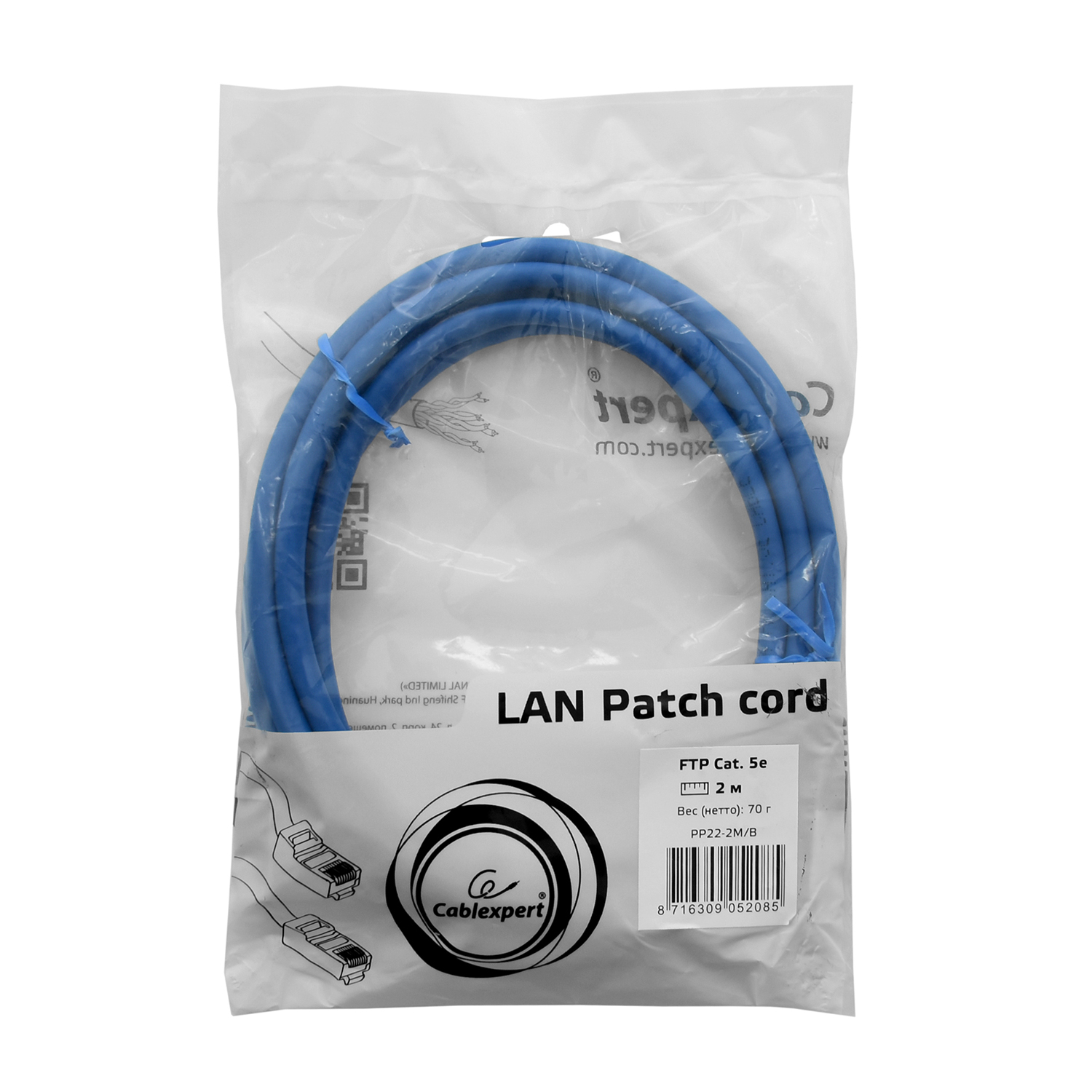 Патч-корд Cablexpert PP22-2M/B, синий Cable Patch cord FTP 5e-Cat 2 m