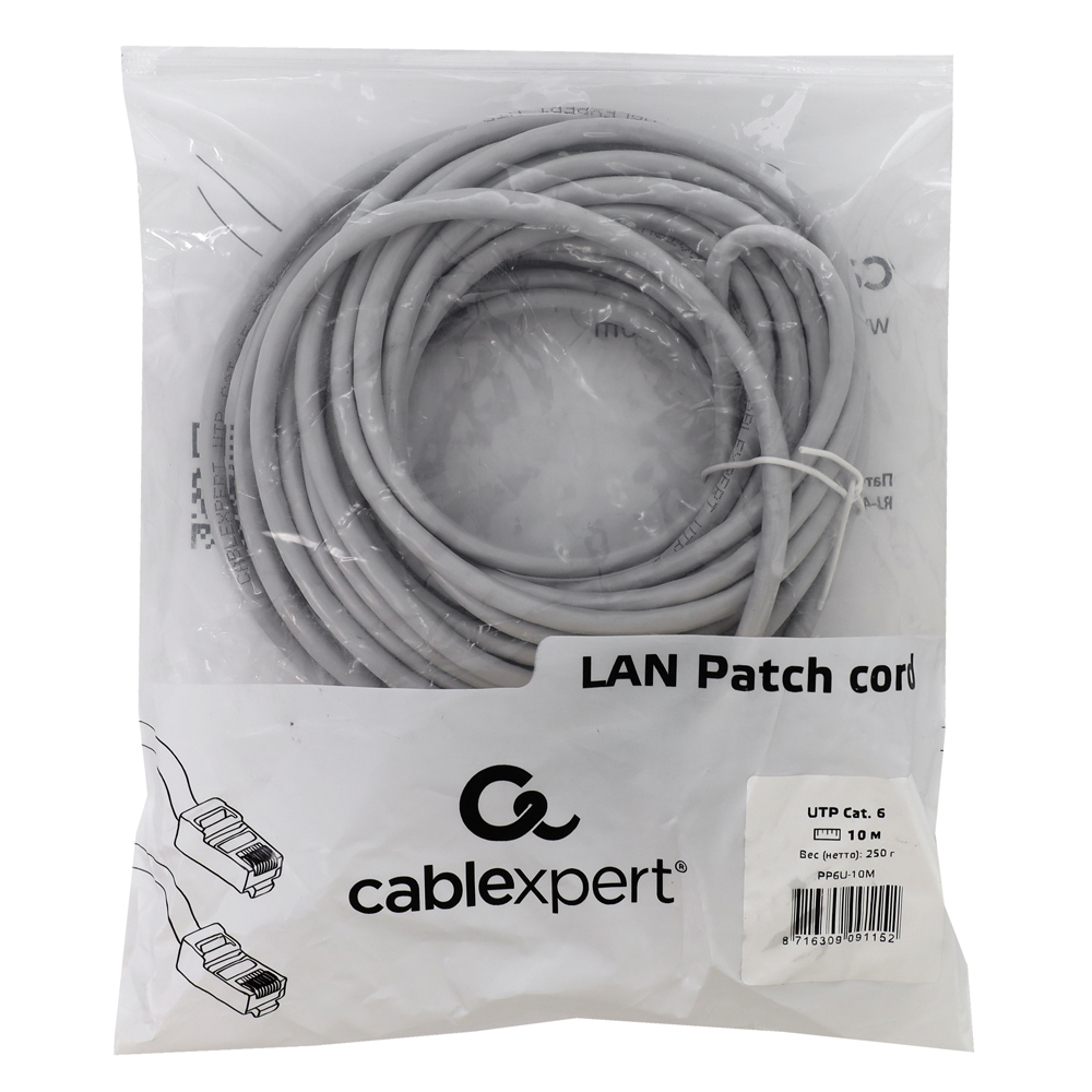 Патч-корд Cablexpert PP6U-10M, серый Cable Patch cord UTP 6e-Cat 10 m