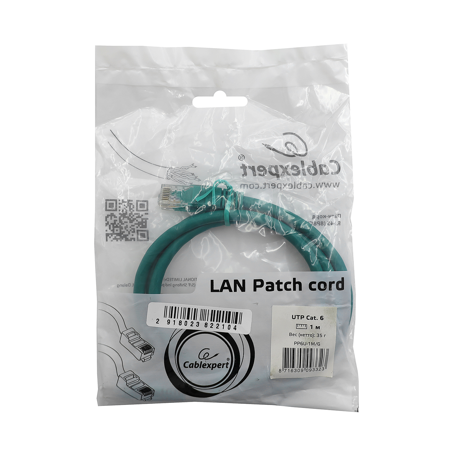 Патч-корд Cablexpert PP6U-1M/G, Зелёный Cable Patch cord UTP 6e-Cat 1 m green