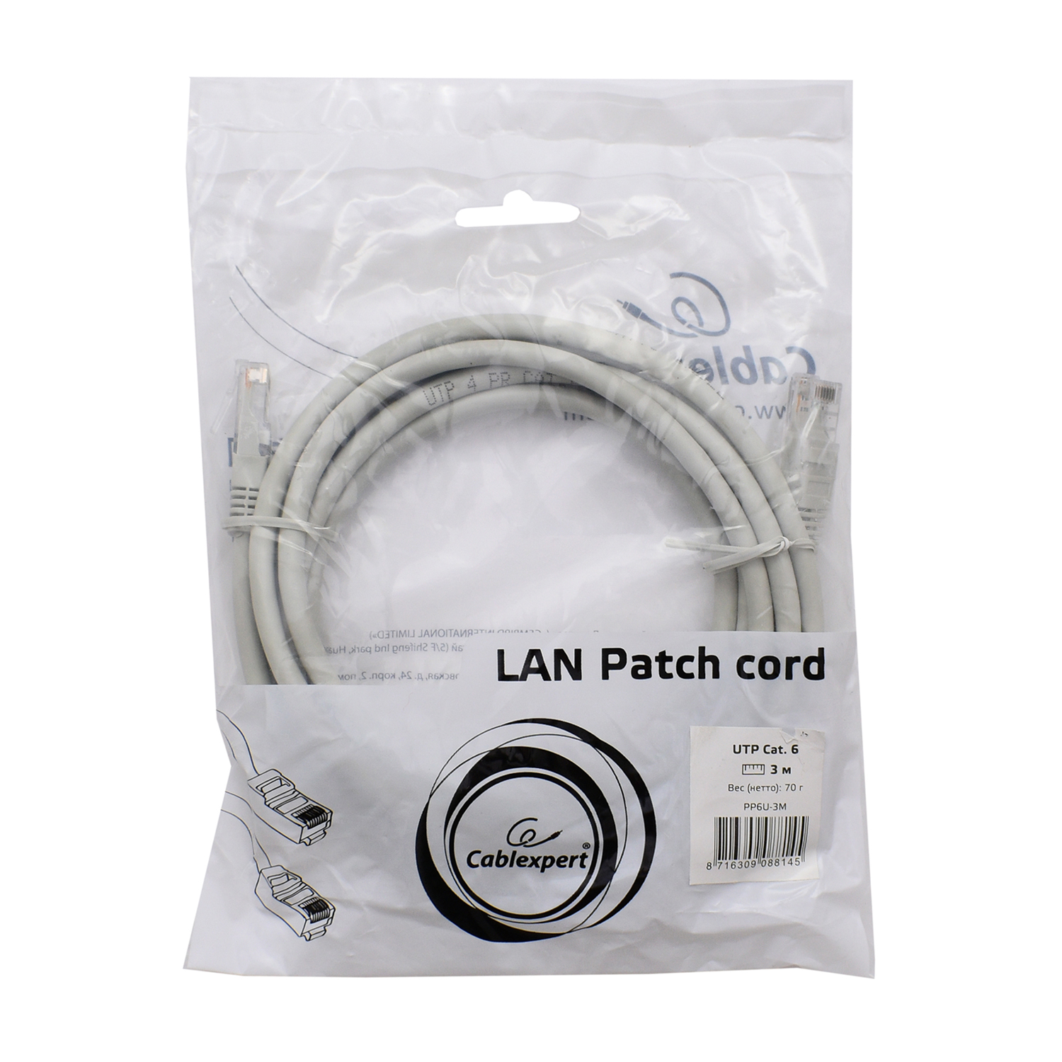 Патч-корд Cablexpert PP6U-3M, серый Cable Patch cord UTP 6e-Cat 3 m