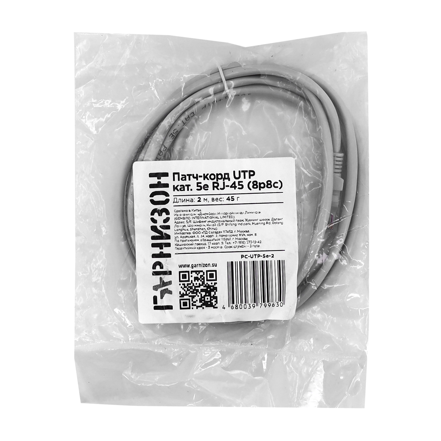 Патч-корд Гарнизон PC-UTP-5e-2, Серый Cable Patch cord UTP 5e-Cat 2 m grey