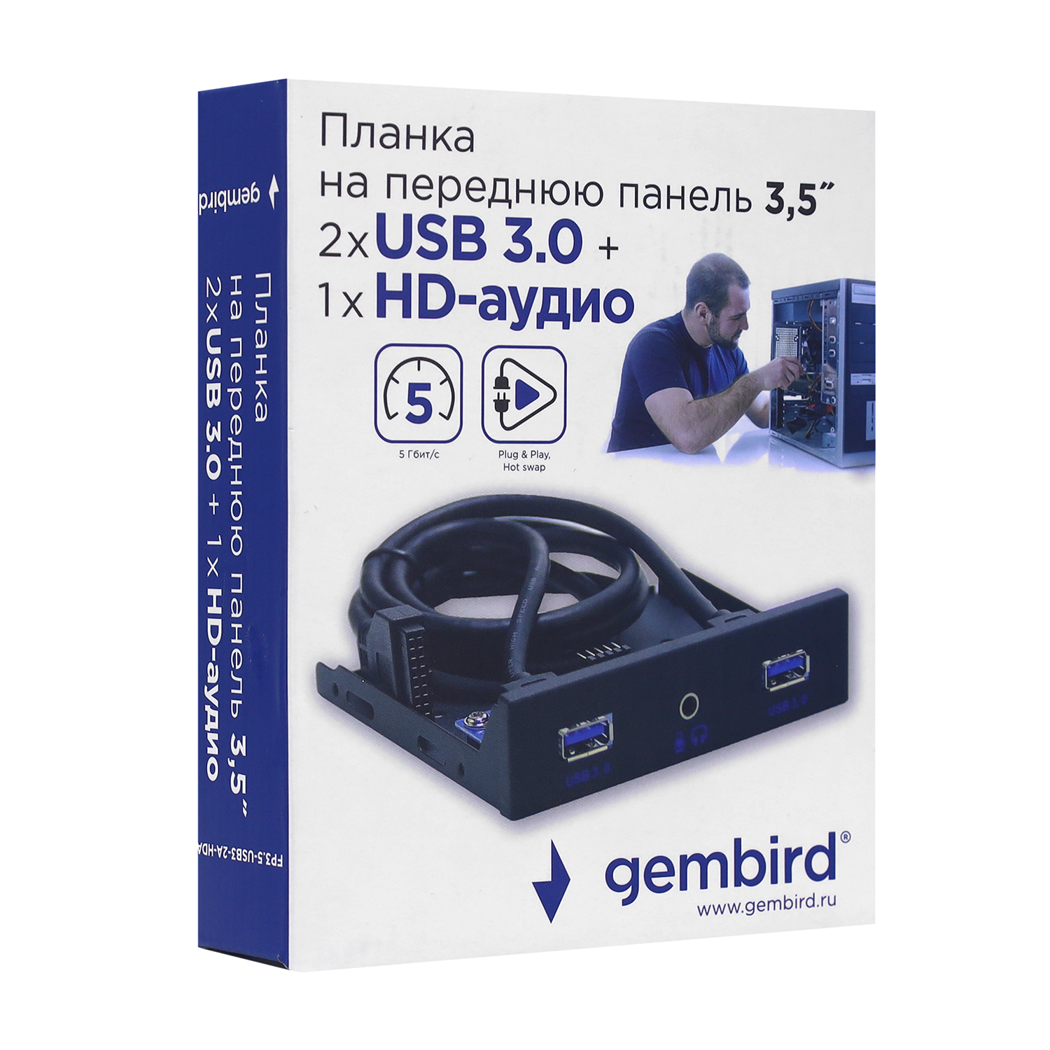Планка 3.5 Gembird FP3.5-USB3-2A-HDA Plank Type-A 2USB 3.0, Jack 3.5mm (HD Audio)