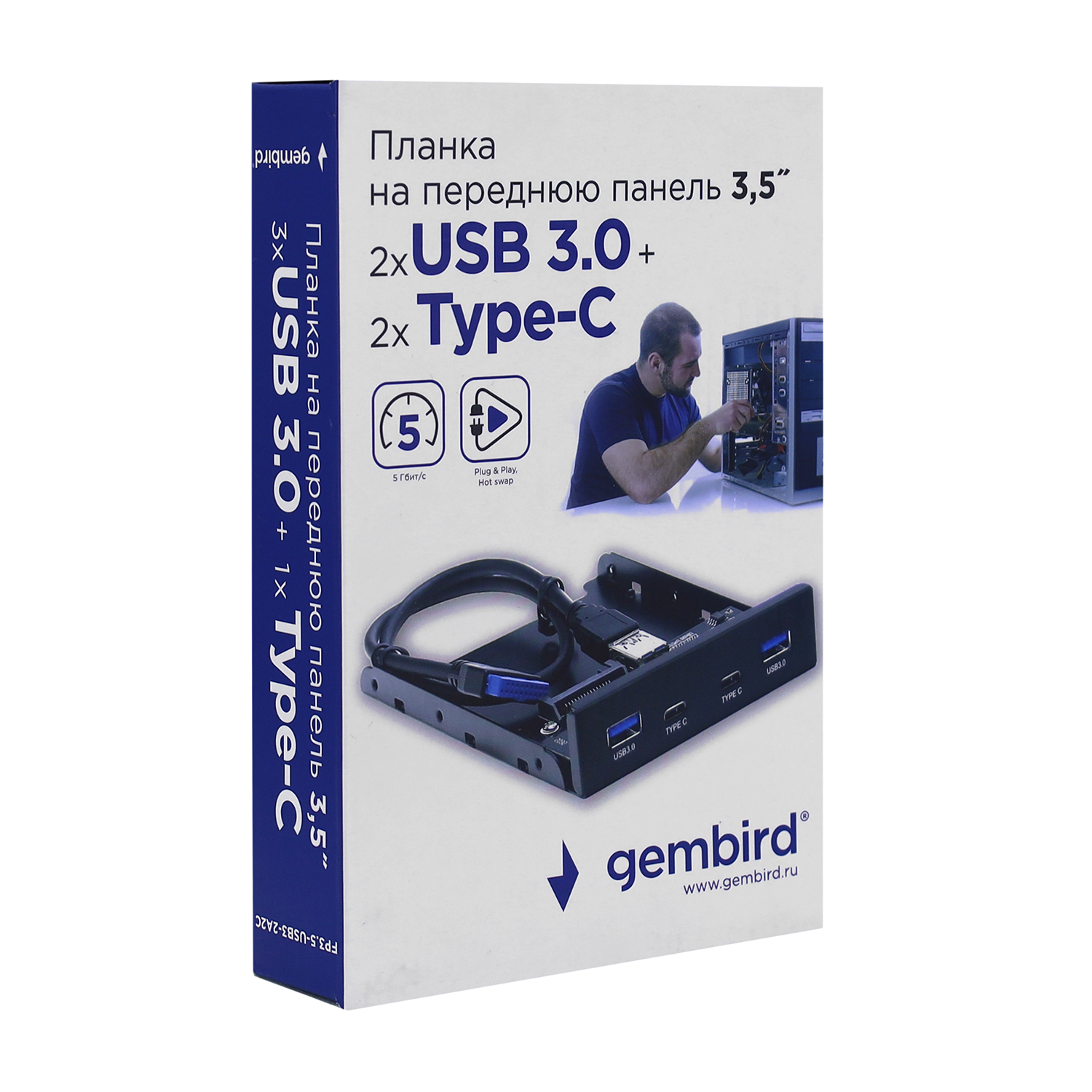 Планка 3.5 Gembird FP3.5-USB3-2A2C Plank Type-A 2USB 3.0, 2USB Type-C