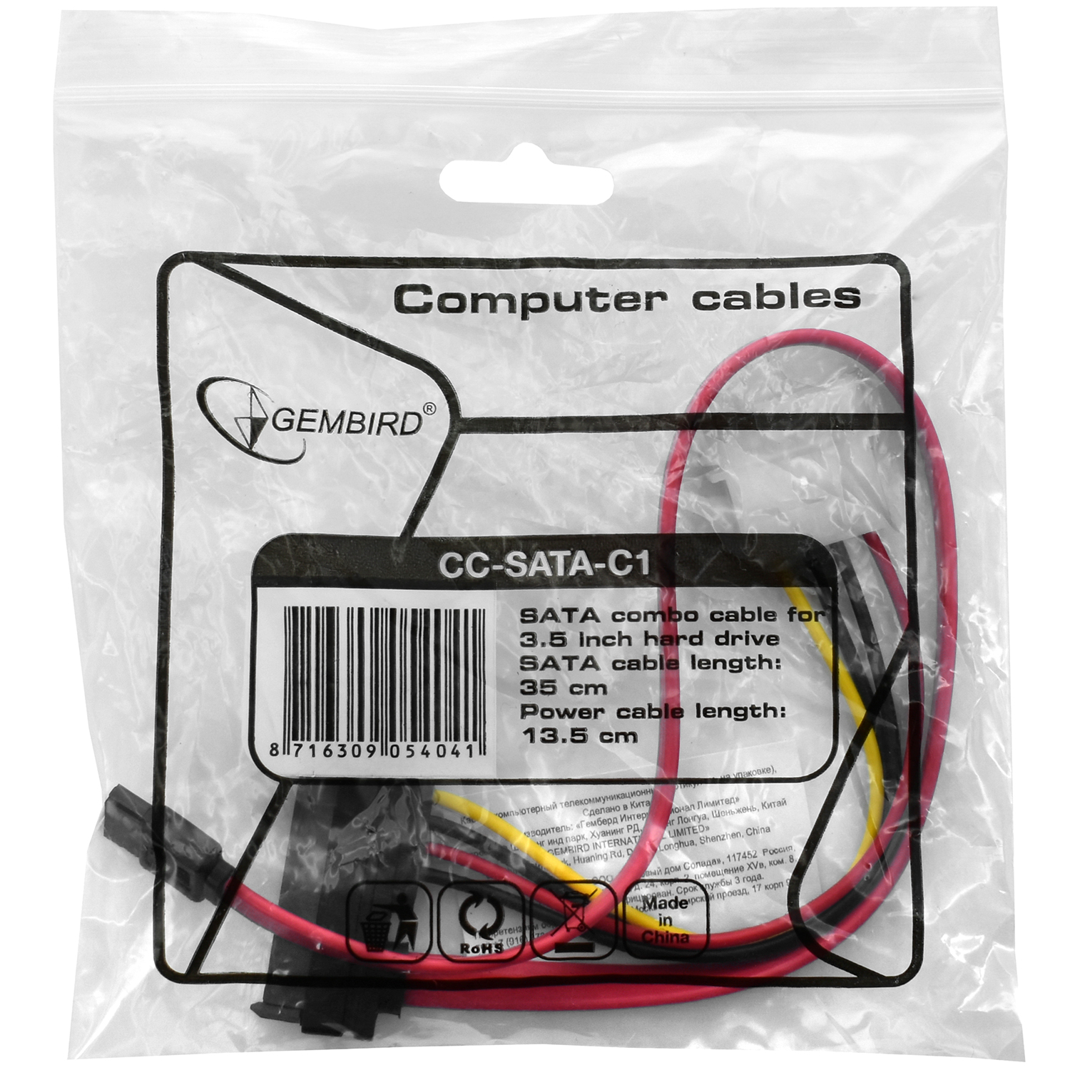 Разветвитель питания Cablexpert CC-SATA-C1, Molex, 2m -> 2 x SATAf Cable converter for power supply
