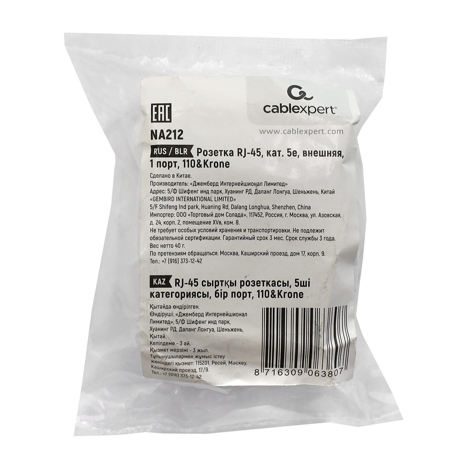 Розетка сетевая Cablexpert NA212 Net Socket RJ-45, 1 разъём
