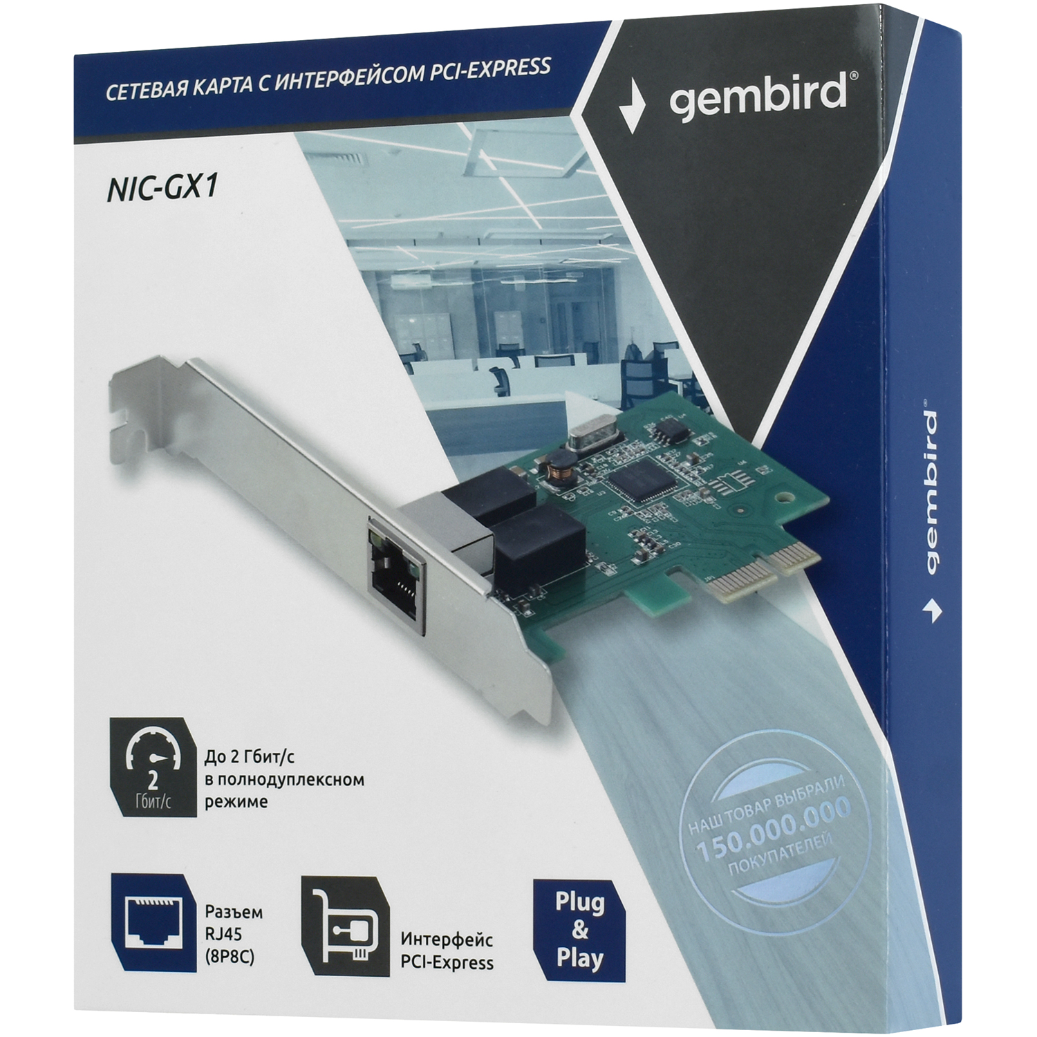 Сетевая карта Gembird NIC-GX1 NIC PCIe, 10/100/1000 Mb, PCI-Ex1, box