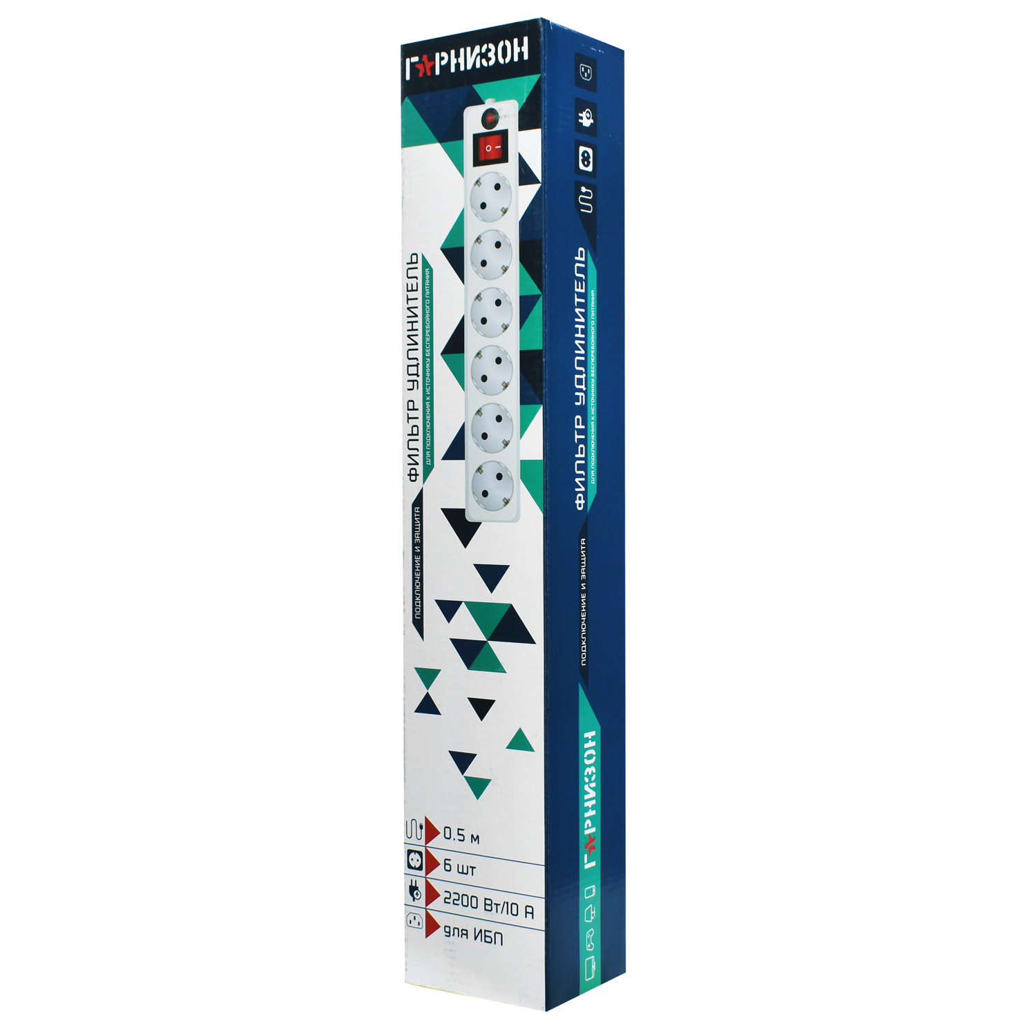 Сетевой фильтр Гарнизон EHW-0, 0.5м, Белый 6 розеток, C14/для ИБП, white