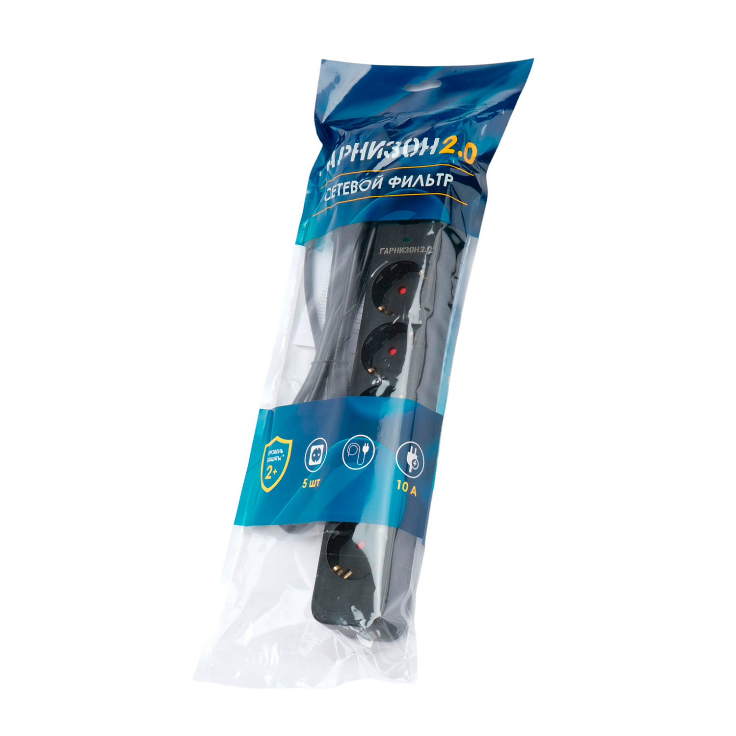 Сетевой фильтр Гарнизон, 2м, EPS-5-B-2, 5 розеток, 10A, Black