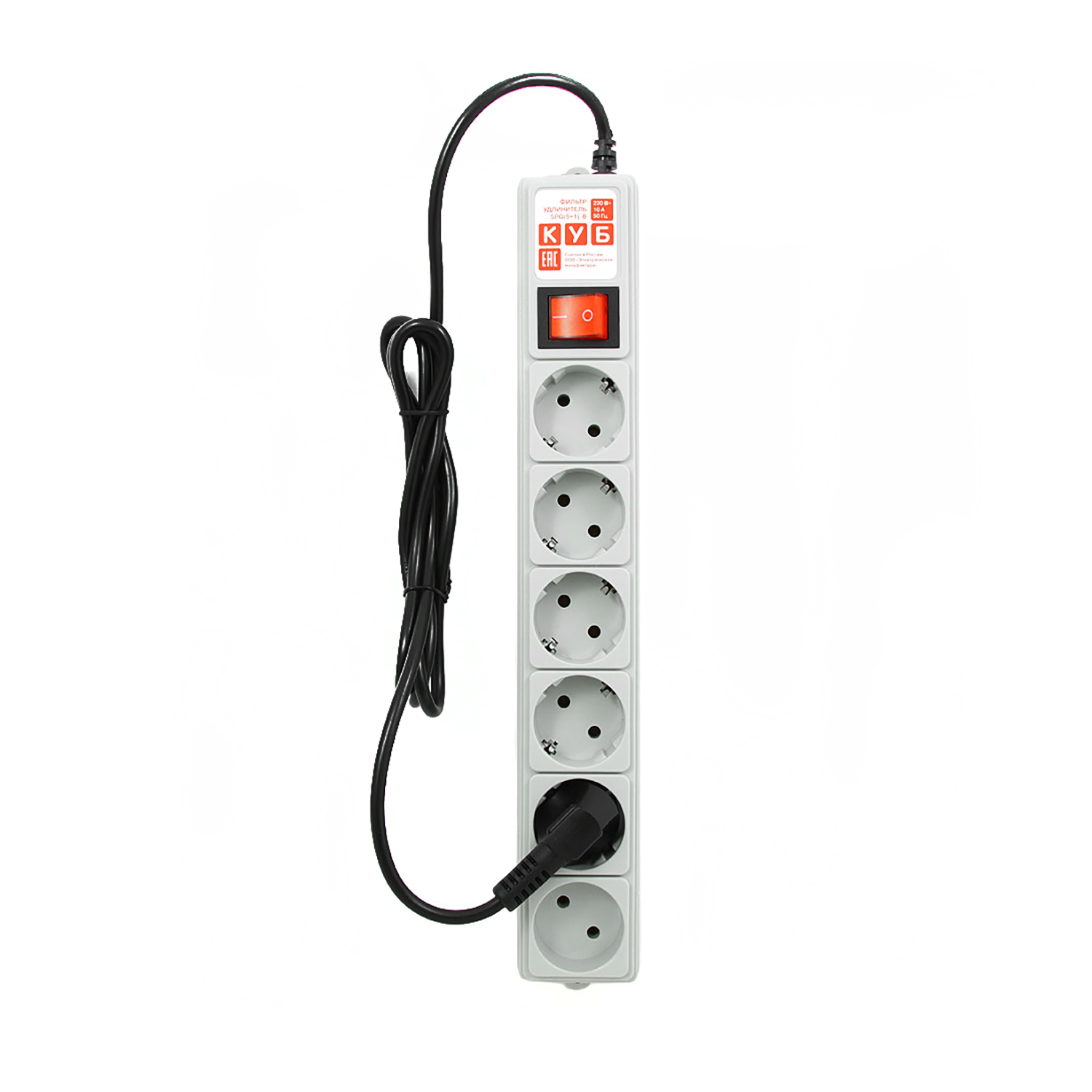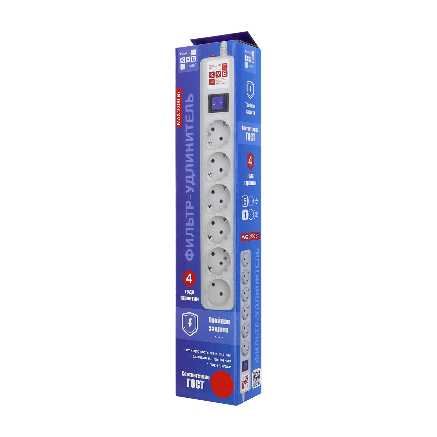 Сетевой фильтр Power Cube Куб SPG(5+1)-B-6, 1.9м, Серый 6 розеток, 10A/2.2кВт