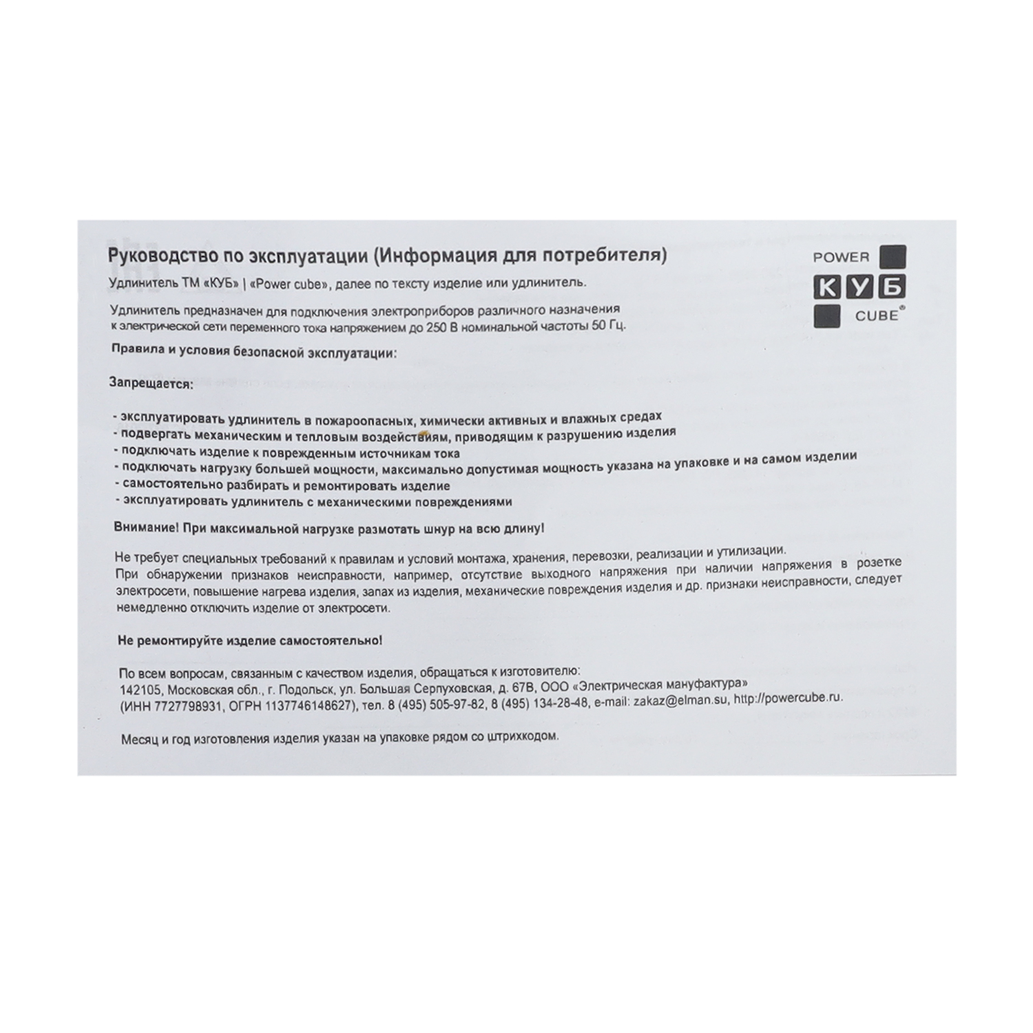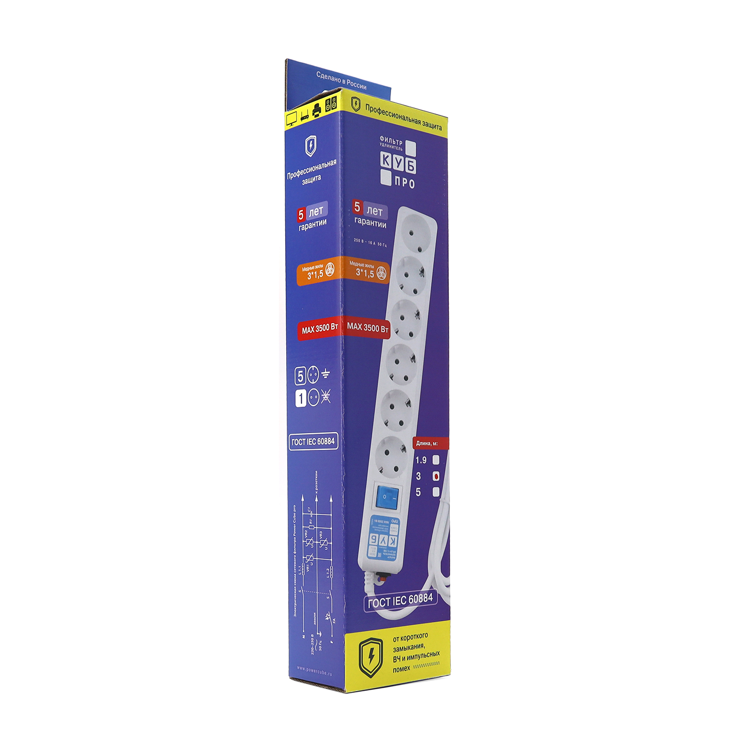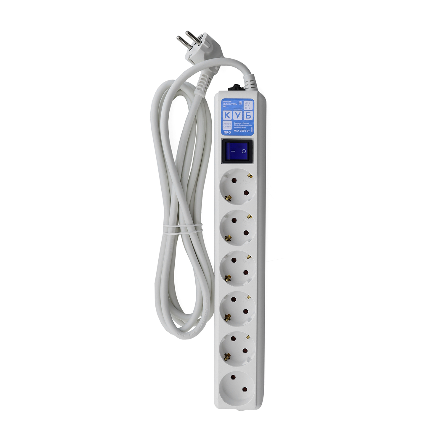 Сетевой фильтр Power Cube Куб Про SPL6-16-P-3M, 3м, Белый Pro, 5+1розеток, 16A/3.5кВт
