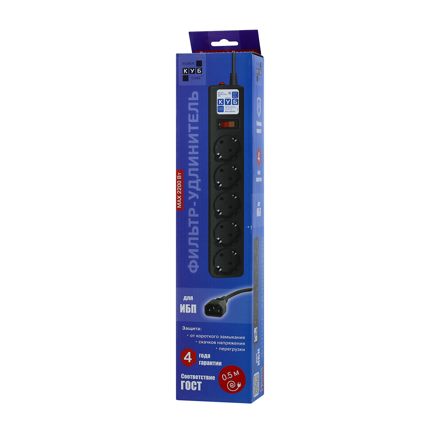 Сетевой фильтр Power Cube SPG5-B1, 0,5м, Черный 5 розеток, 10A, C14/для ИБП, black