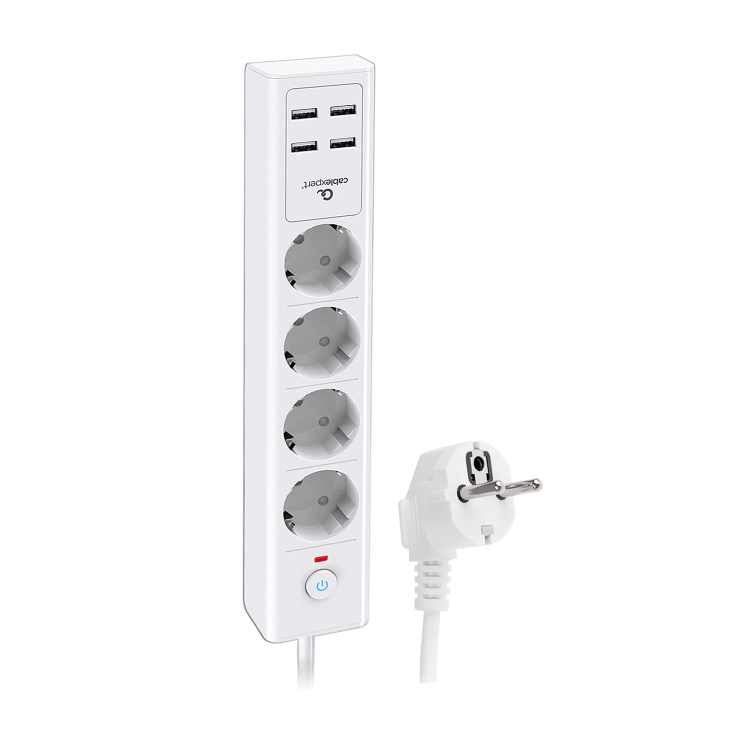 Сетевой фильтр + зарядка Cablexpert Exnovo EXN-4-U4-W-2, Белый 2m, 4розетки,16A, 4хUSB, 3.4А, white