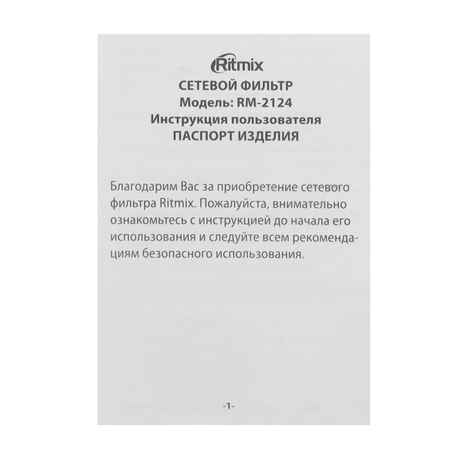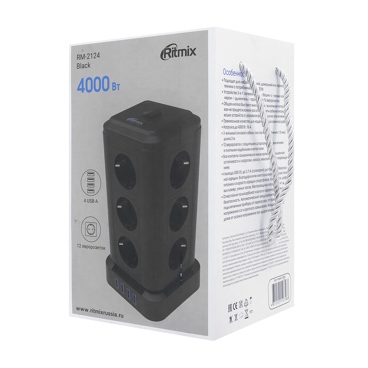 Сетевой фильтр + зарядка Ritmix RM-2124, 2m, Чёрный