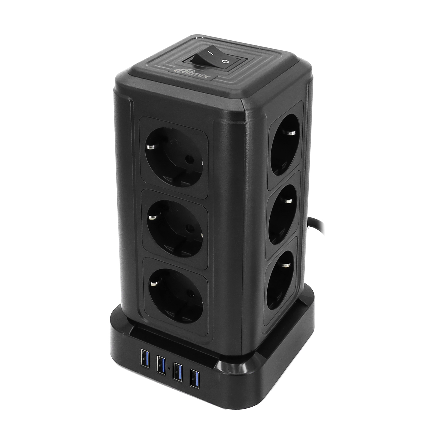 12 розеток, 4 USB, black
