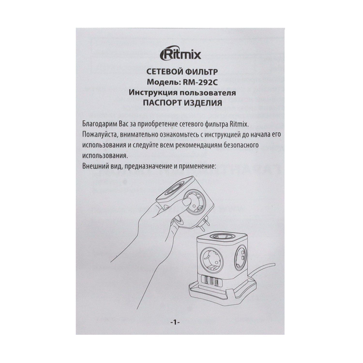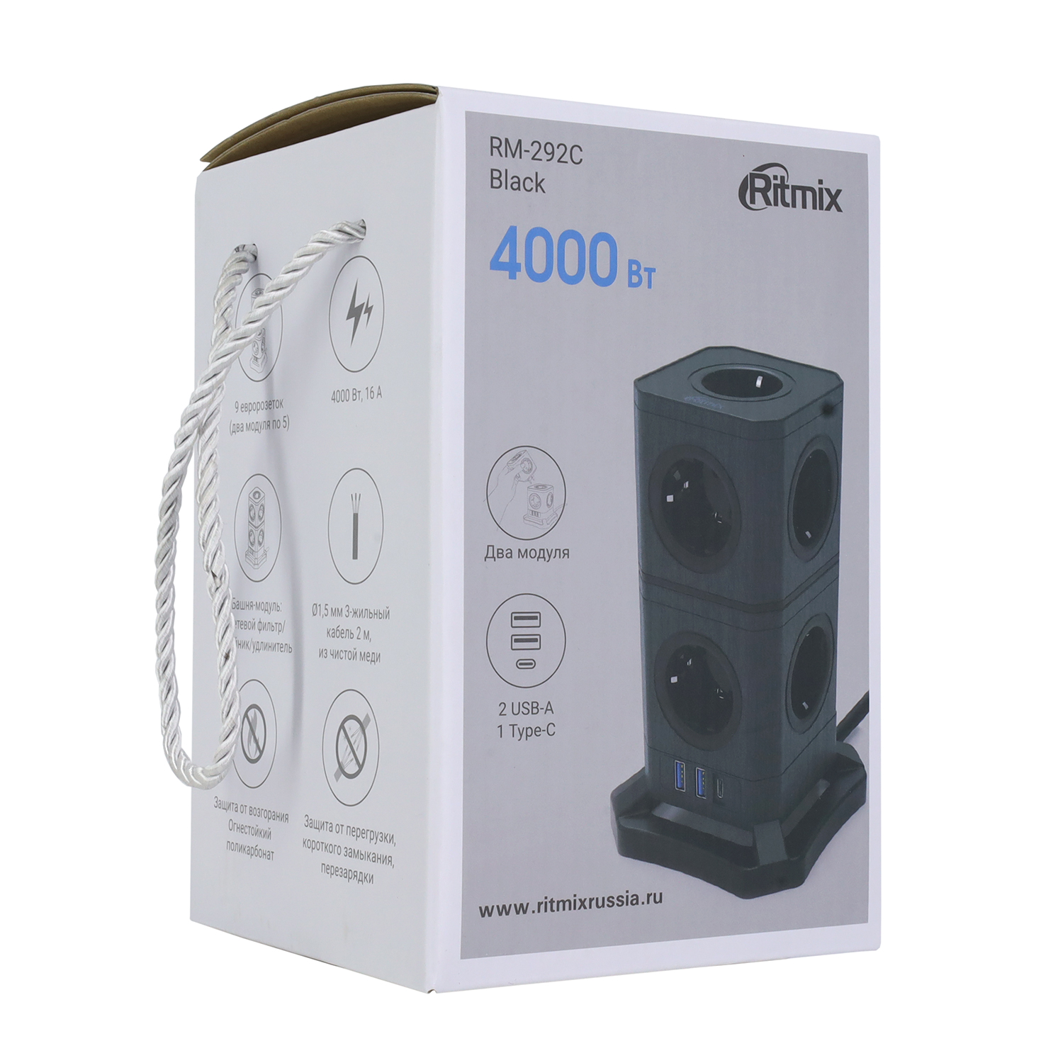 Сетевой фильтр + зарядка Ritmix RM-292C, 2m, Чёрный