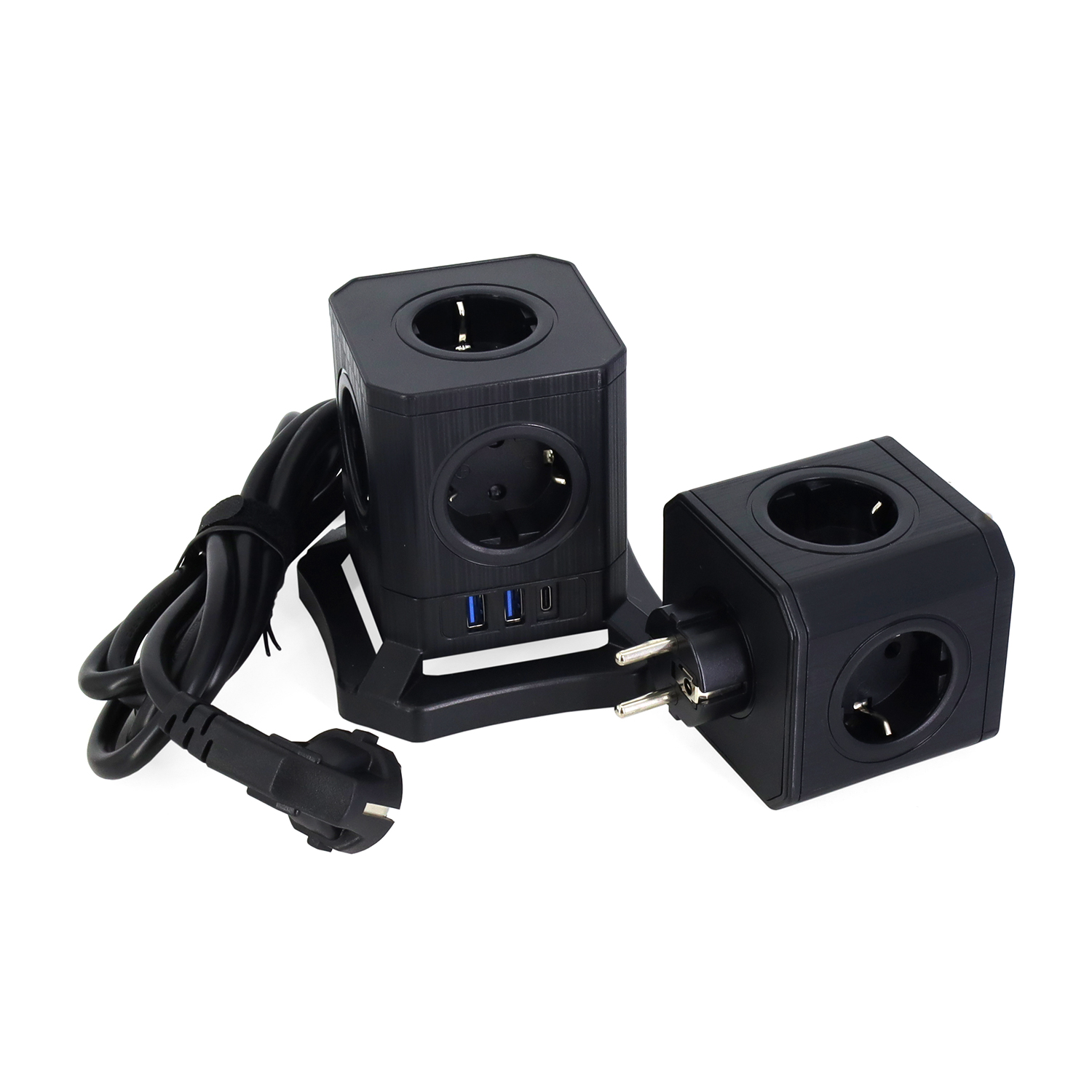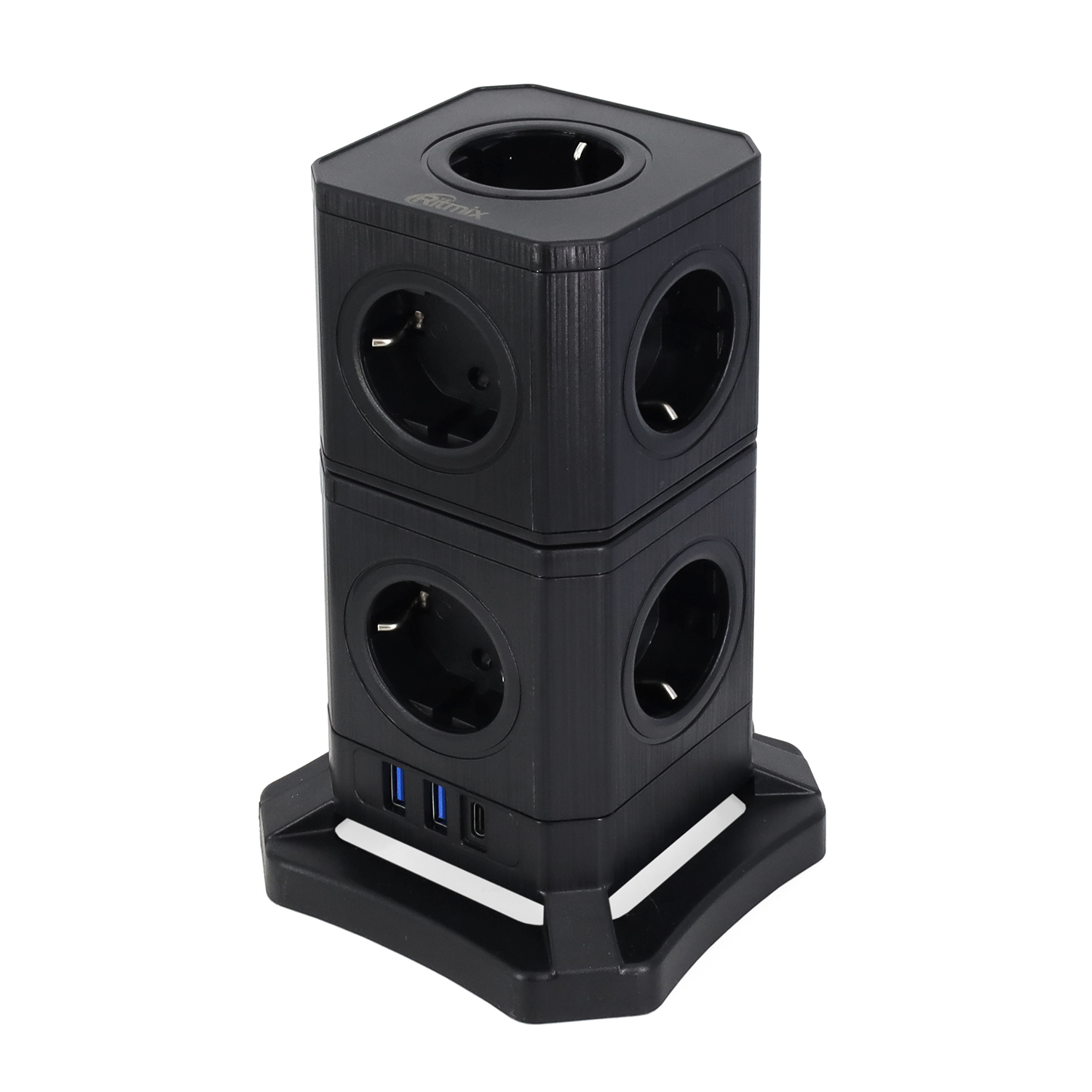 9 (2x5) розеток, 2 USB-A + USB Type-C, black