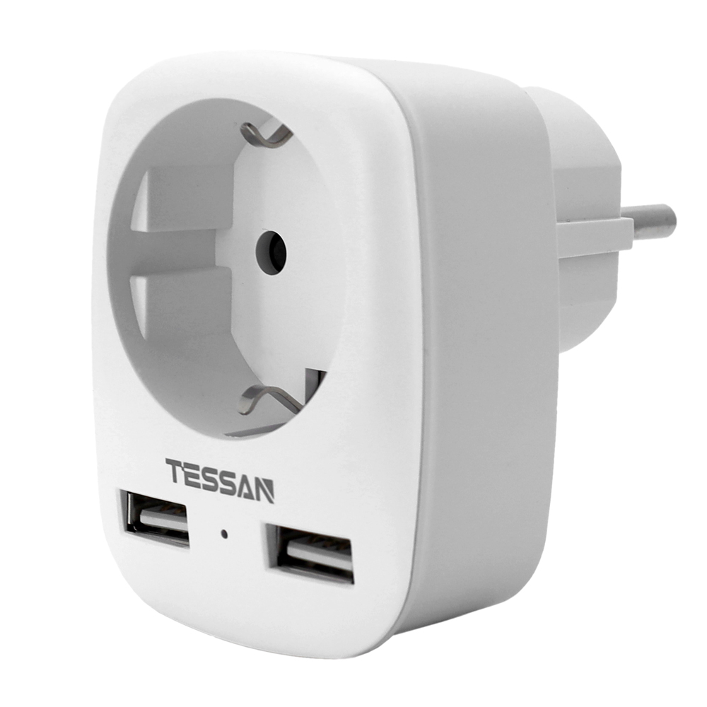 Сетевой фильтр + зарядка Tessan TS-611-DE, Серый 1 розетка, 16A, 2 USB 2.4A max, grey