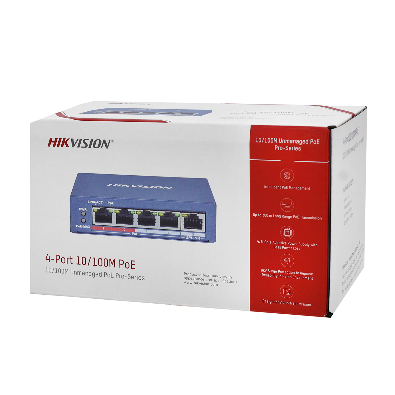Сетевой коммутатор Hikvision DS-3E0105P-E(B) Switch 4 port 10/100M 4xPoE, 1xRJ45 Uplink, PoE 60W, desktop