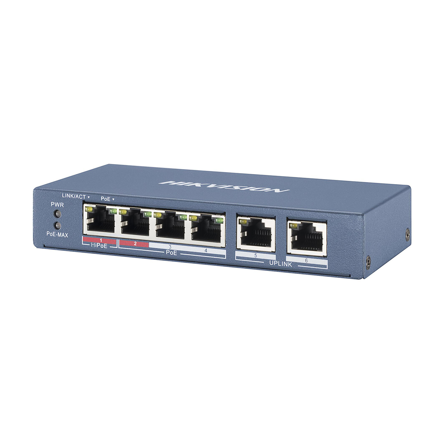 Switch 4 port 10/100 Hikvision DS-3E0106HP-E, 2xHi PoE, 3xPoE, 2xRJ45, PoE 60W, desktop