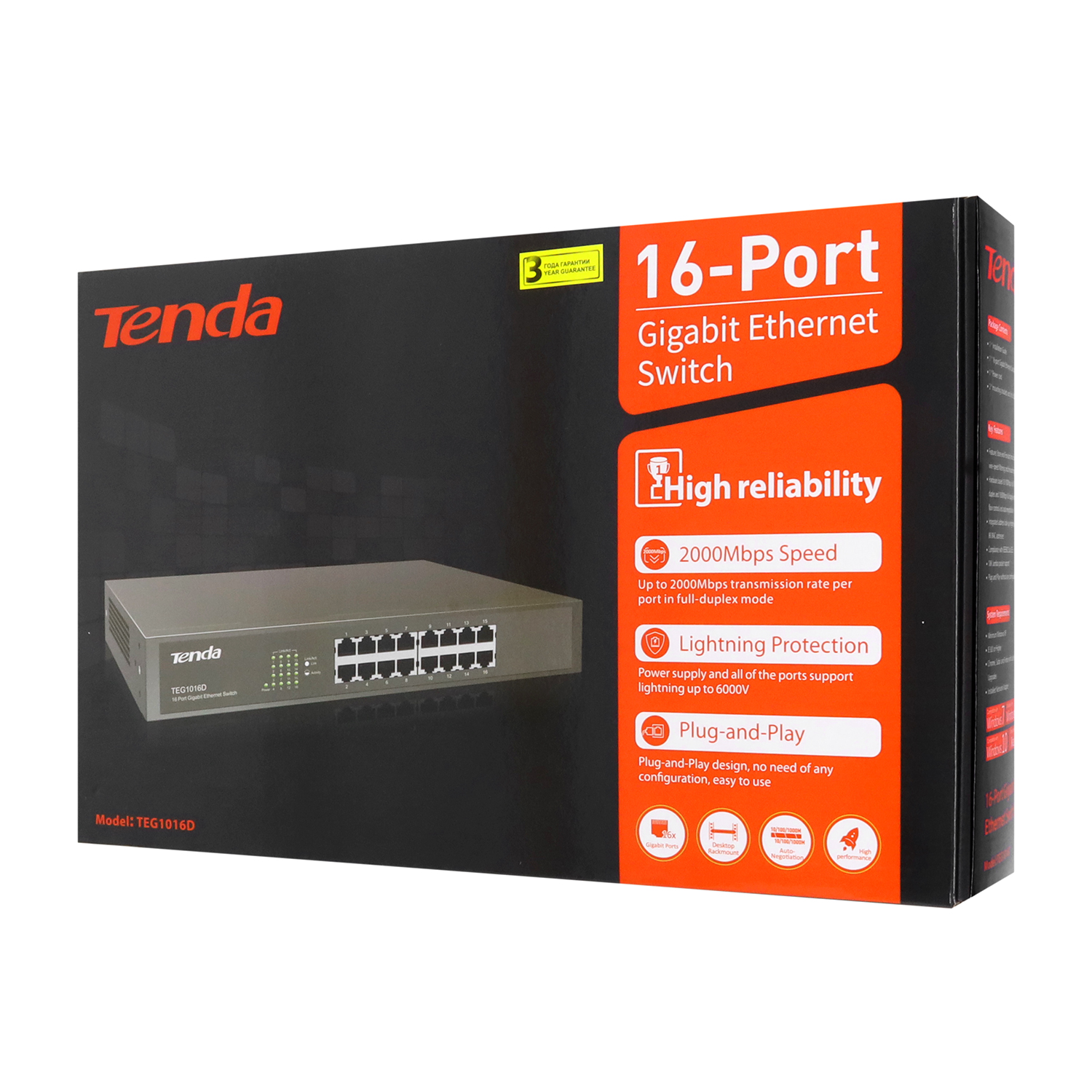 Сетевой коммутатор Tenda TEG1016D Switch 16 port 10/100/1000M, rack/desktop