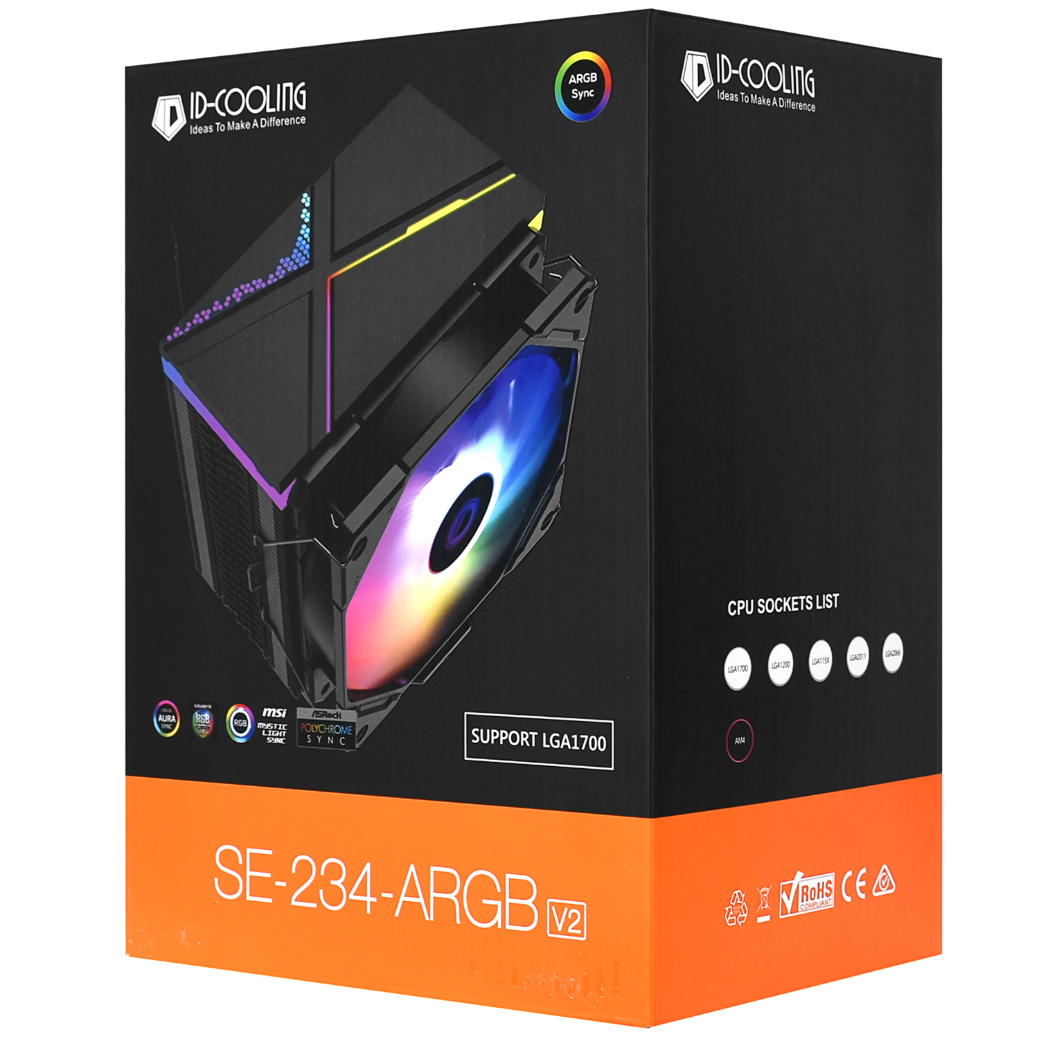 Система охлаждения ID-Cooling SE-234-ARGB V2 Cooler for S1700/1200/115x/2066/AMD, 200W, 500-1500rpm, 68.2CFM, 4 pin