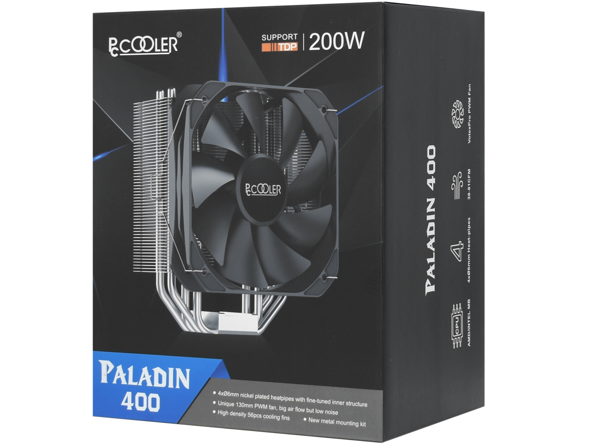 Система охлаждения PCCooler Paladin 400, black Cooler for S1700/1200/115x/AM4, 200W, 800-1600rpm, 130cm fan