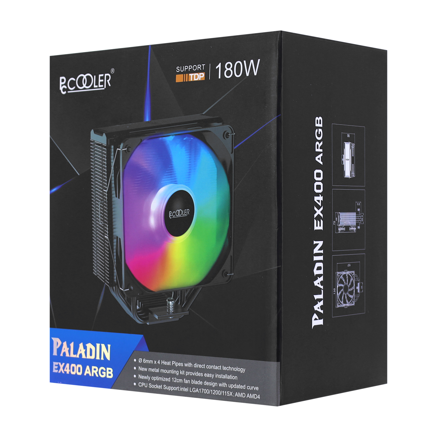 Система охлаждения PCCooler Paladin EX400 ARGB Cooler for S1700/1200/115x/AMD, 400-1800rpm, 120cm fan, 180W