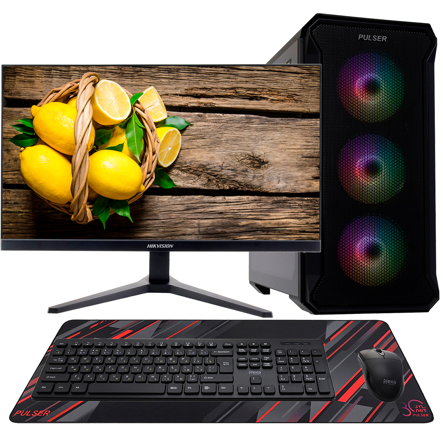 Core i5-12400F-2.5GHz/H610/RAM 16GB/SSD 512GB (M.2)/RTX5060-8GB/no DVD/600W/Монитор 23.8" HikVision/USB клав+мышь+коврик