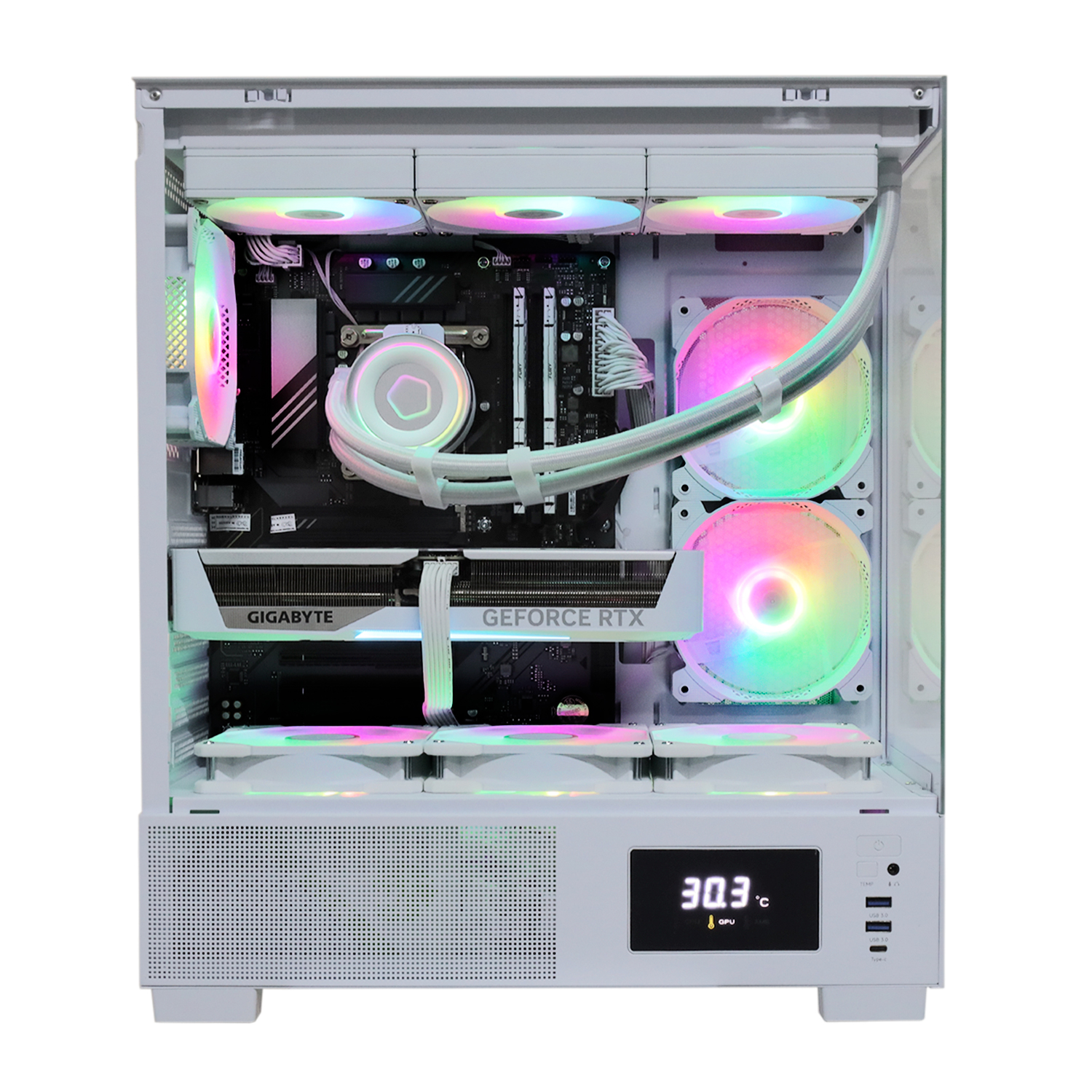 Сбоку: 2x 120 мм вентилятора с ARGB подсветкой