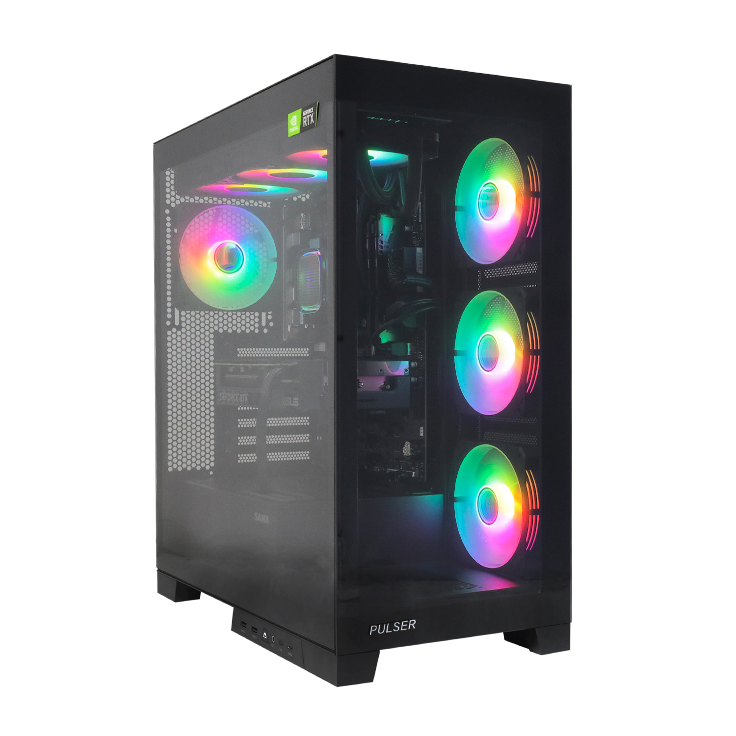 Сбоку: 3x 120 мм вентилятора с RGB подсветкой