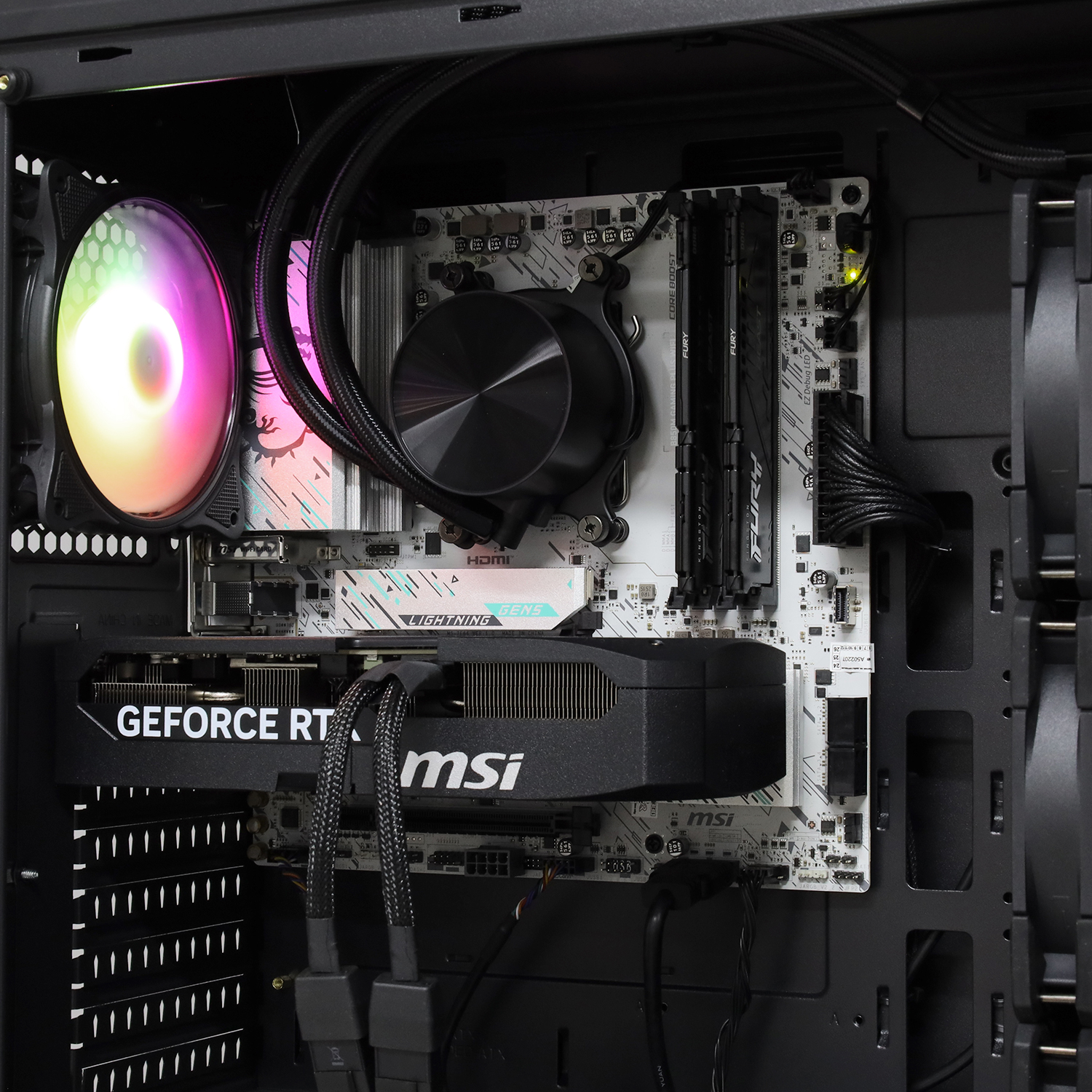 Спереди: 3х 120 мм вентилятора с ARGB подсветкой