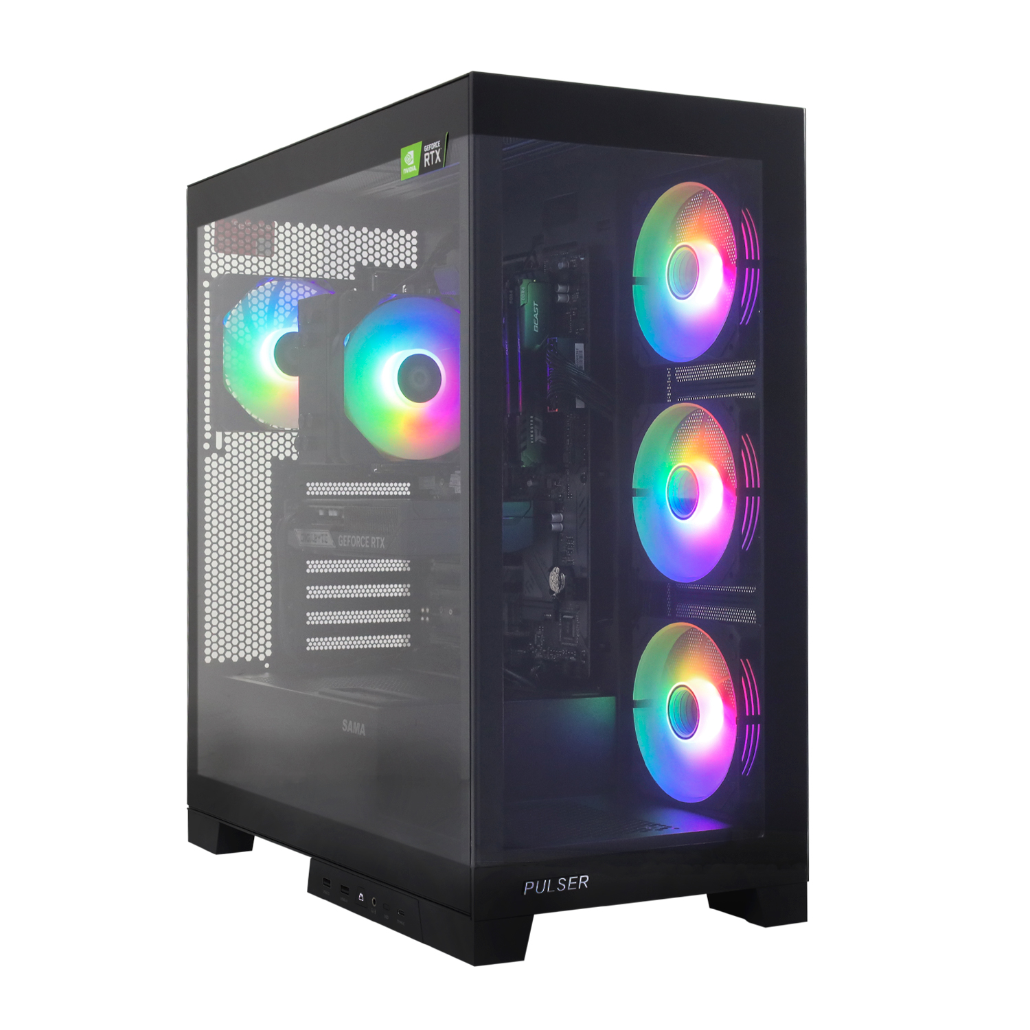 Сбоку: 3x 120 мм вентилятора с RGB подсветкой