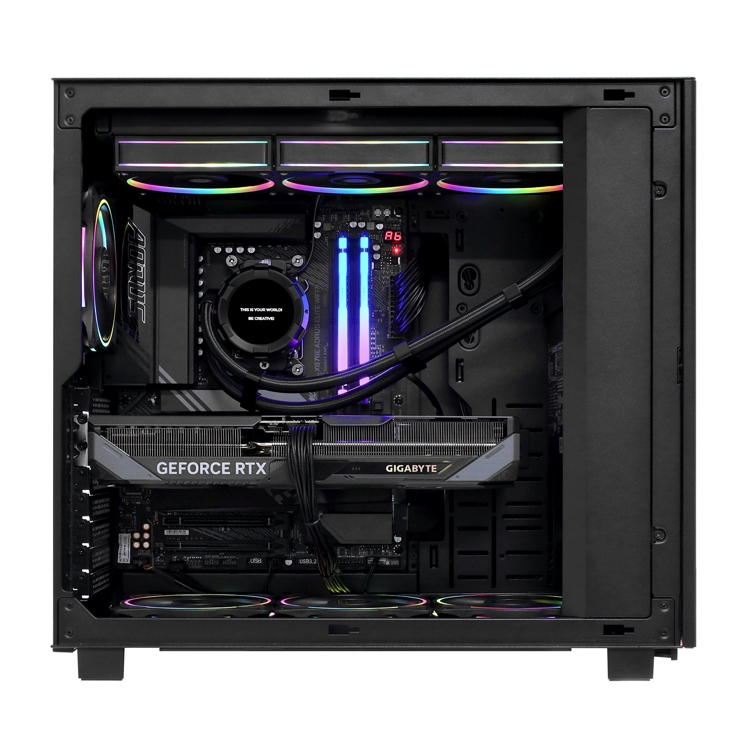 Снизу: 3х 120 мм вентилятора с ARGB подсветкой