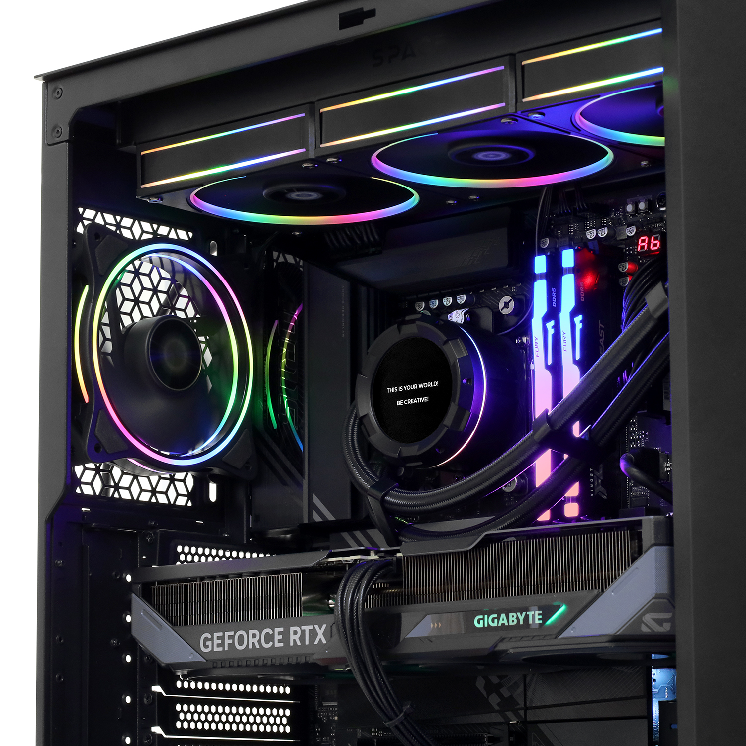 Сверху: 3x 120 мм вентилятора с ARGB подсветкой от СВО ID-Cooling SL360