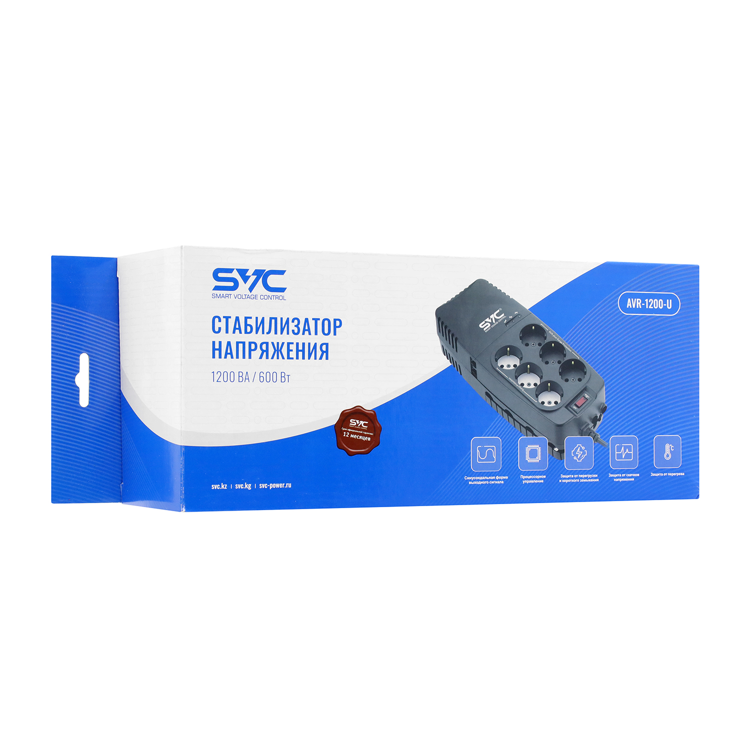 Стабилизатор напряжения SVC AVR-1200-U, 1200VA, 6*Schunko 600W