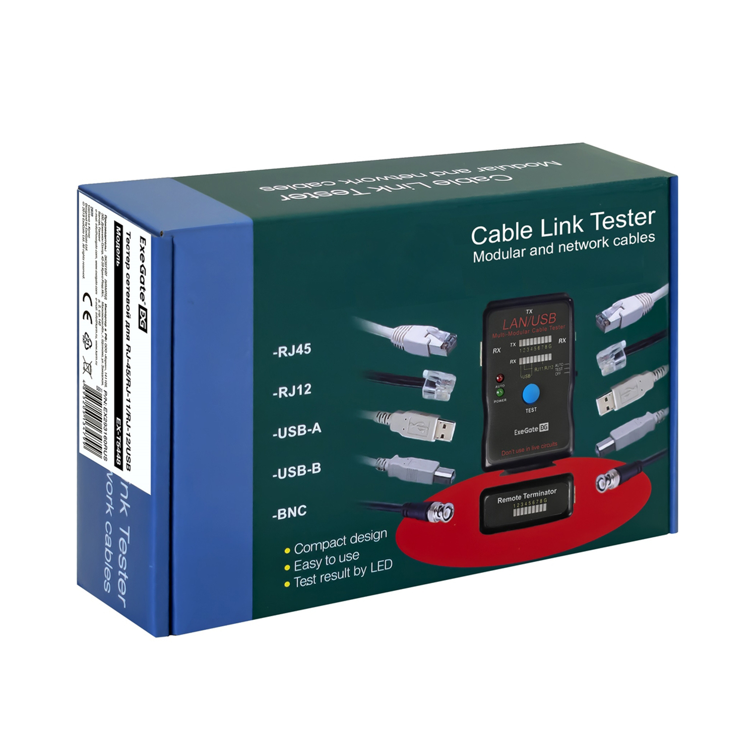 Тестер сетевого кабеля ExeGate EX-T5448, RJ-45/RJ-11/RJ-12/USB