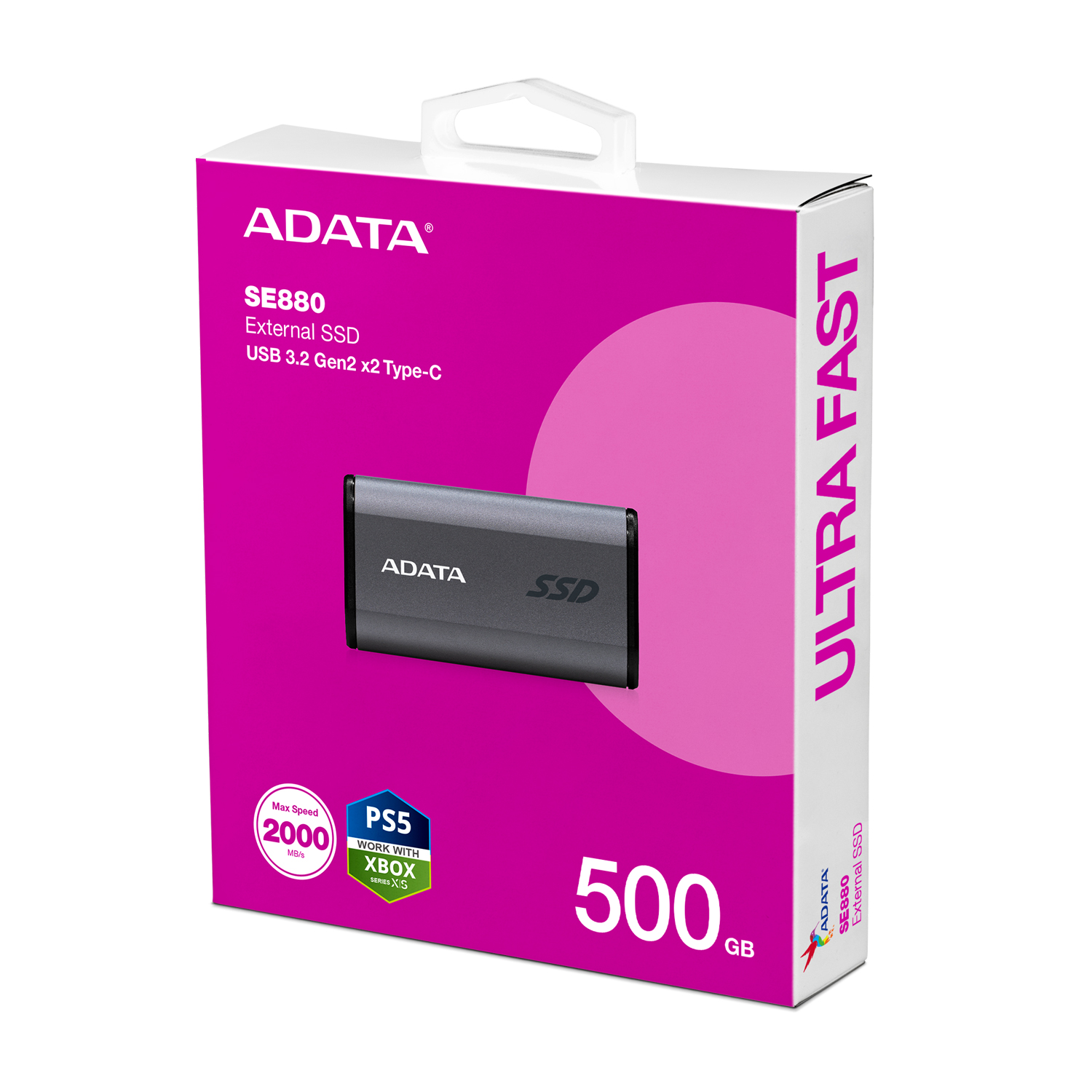Твердотельный накопитель SSD ADATA, AELI-SE880-500GCGY, 500 GB USB Elite SE880, USB3.2 Type-C Grey