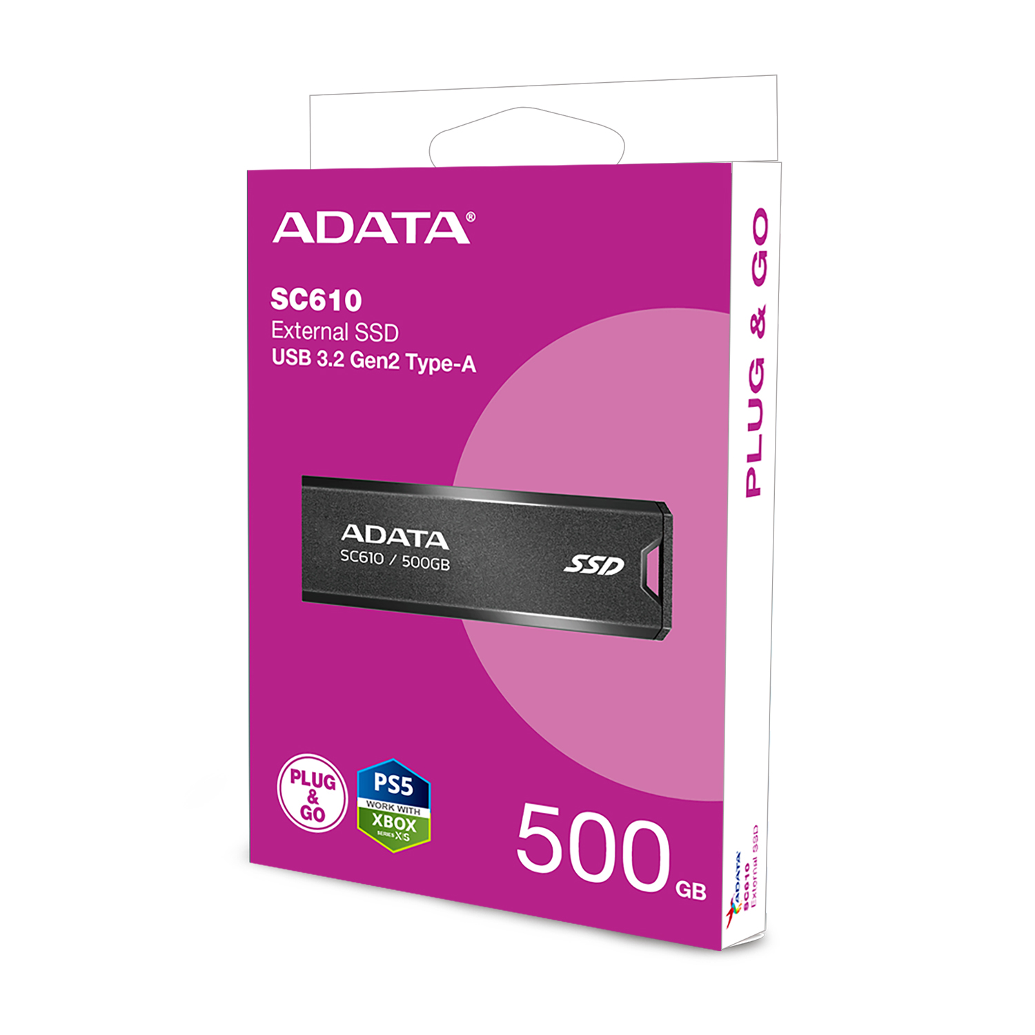 SSD USB 500 GB ADATA SC610, SC610-500G-CBK/RD, USB3.2, black