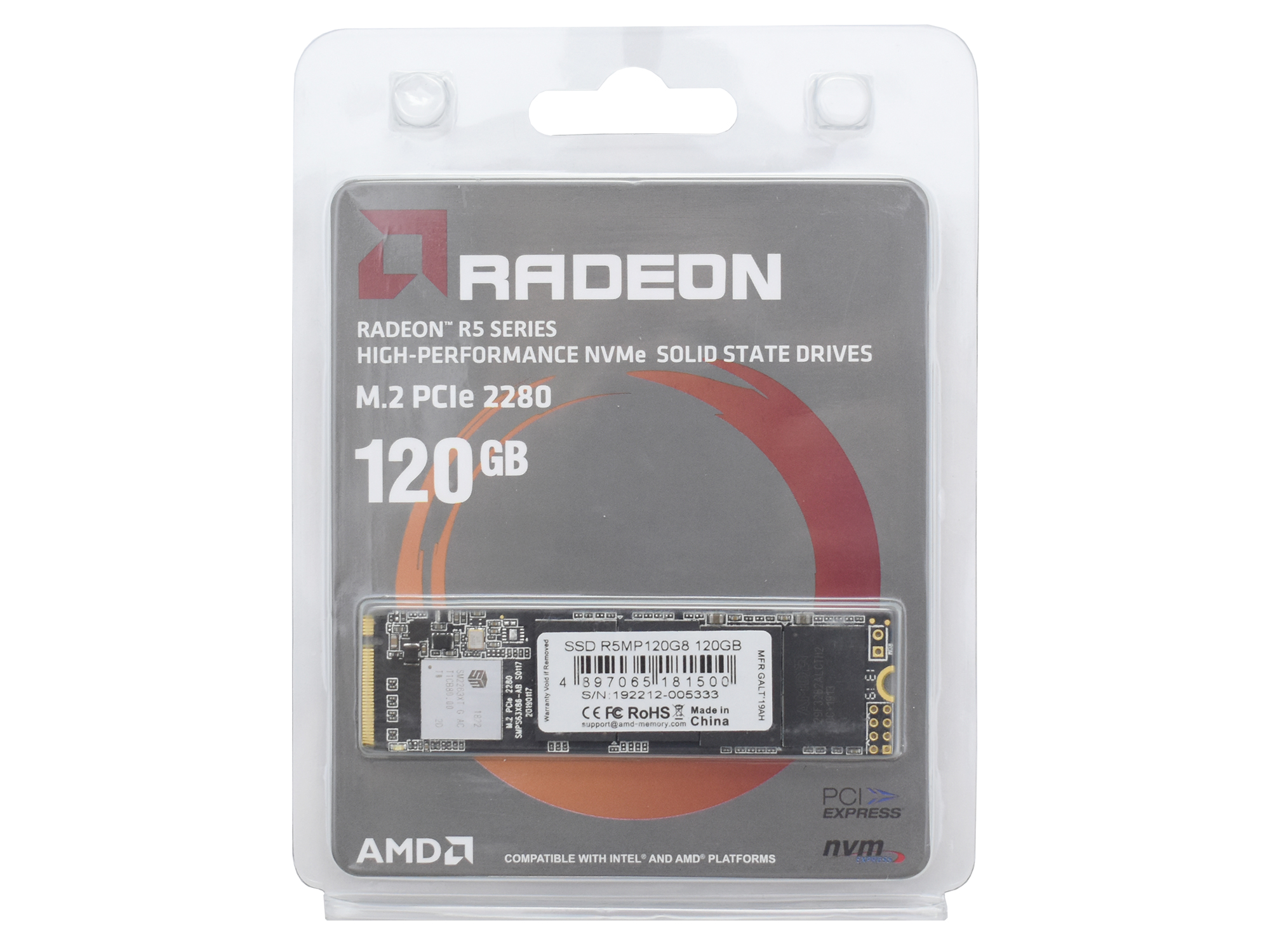 Твердотельный накопитель SSD M.2 PCIe AMD Radeon R5 R5MP120G8, 120 GB PCIe 3.0 x4, NVMe 1.3