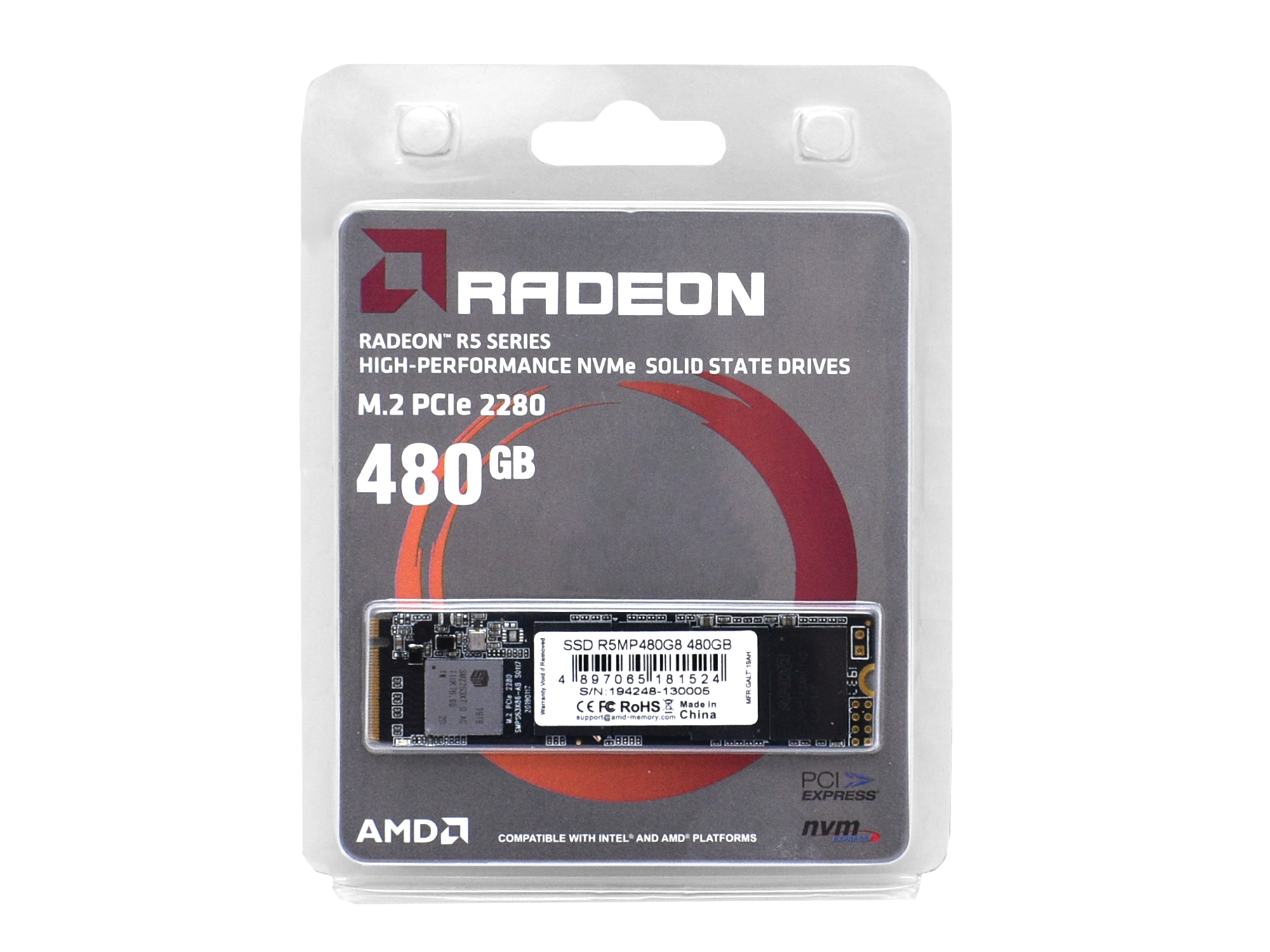 Твердотельный накопитель SSD M.2 PCIe AMD Radeon R5 R5MP480G8, 480 GB PCIe 3.0 x4, NVMe 1.3