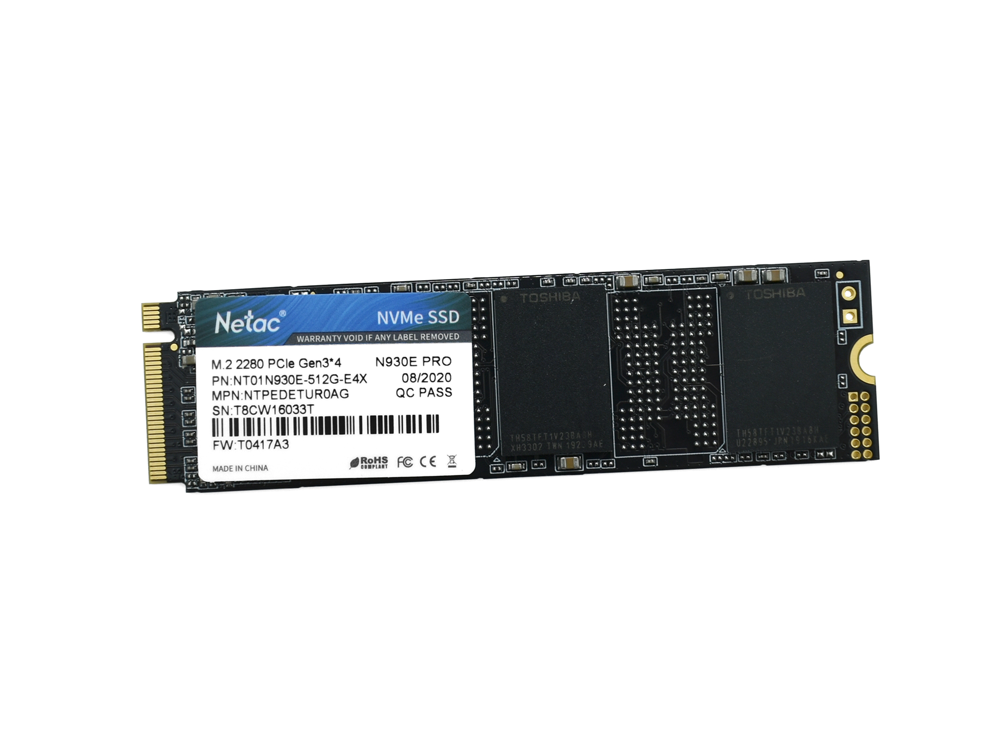Твердотельный накопитель SSD M.2 PCIe Netac N930E Pro, NT01N930E-512G-E4X, 512 GB 512GB, NVMe
