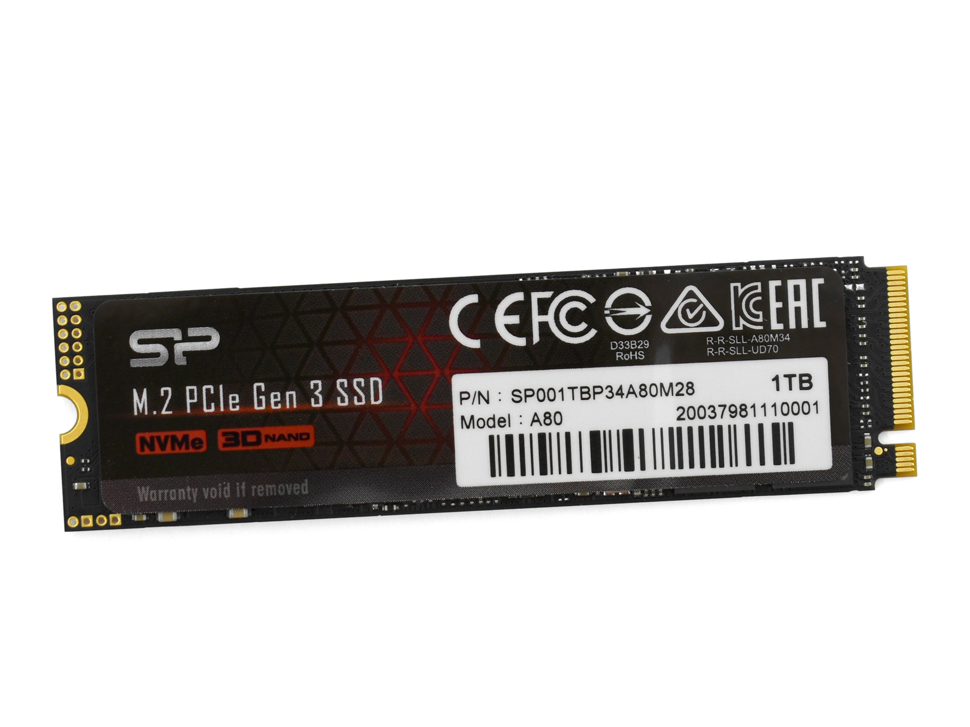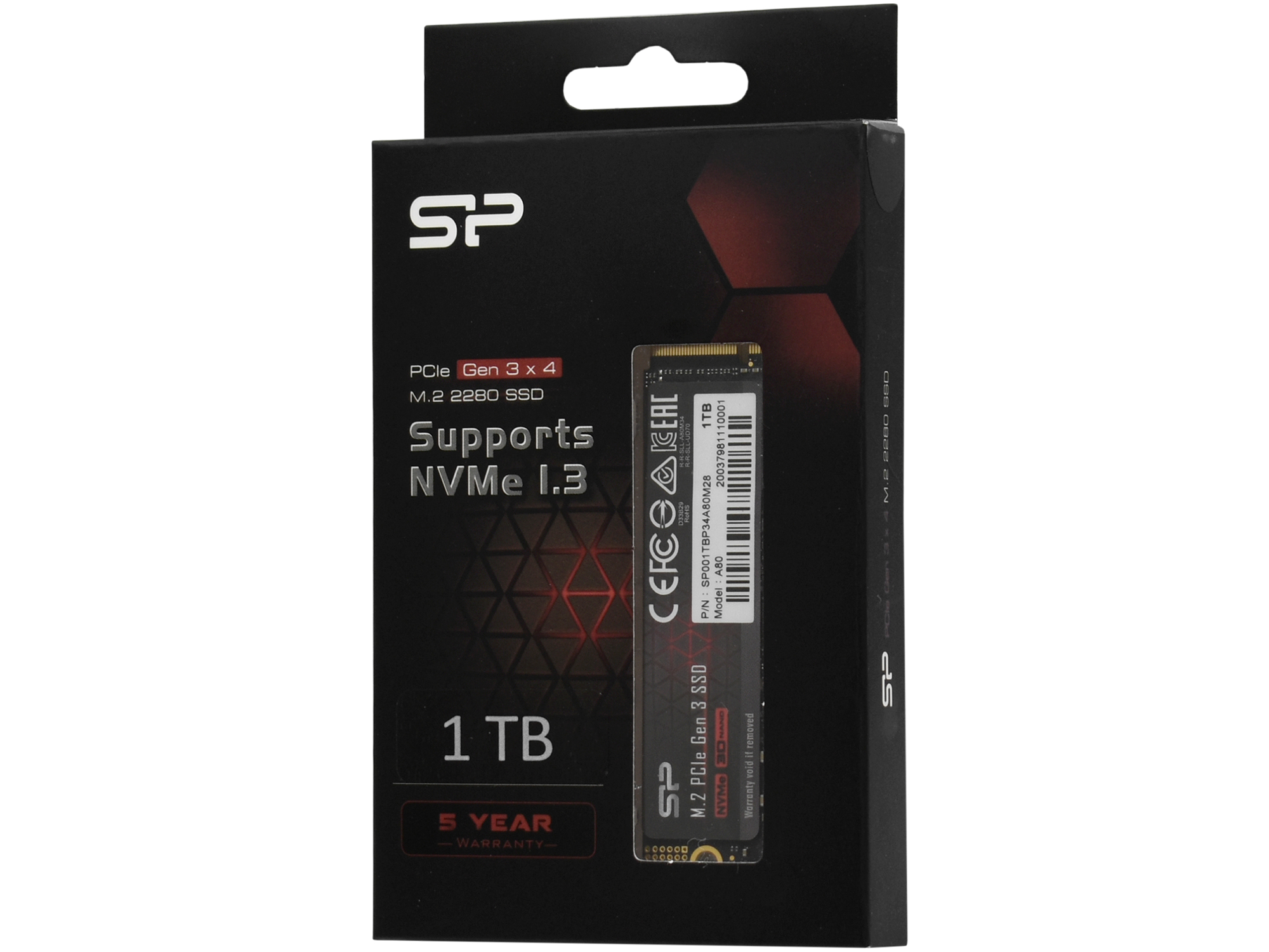 Твердотельный накопитель SSD M.2 PCIe Silicon Power A80, SP001TBP34A80M28, 1TB 1 TB NVMe