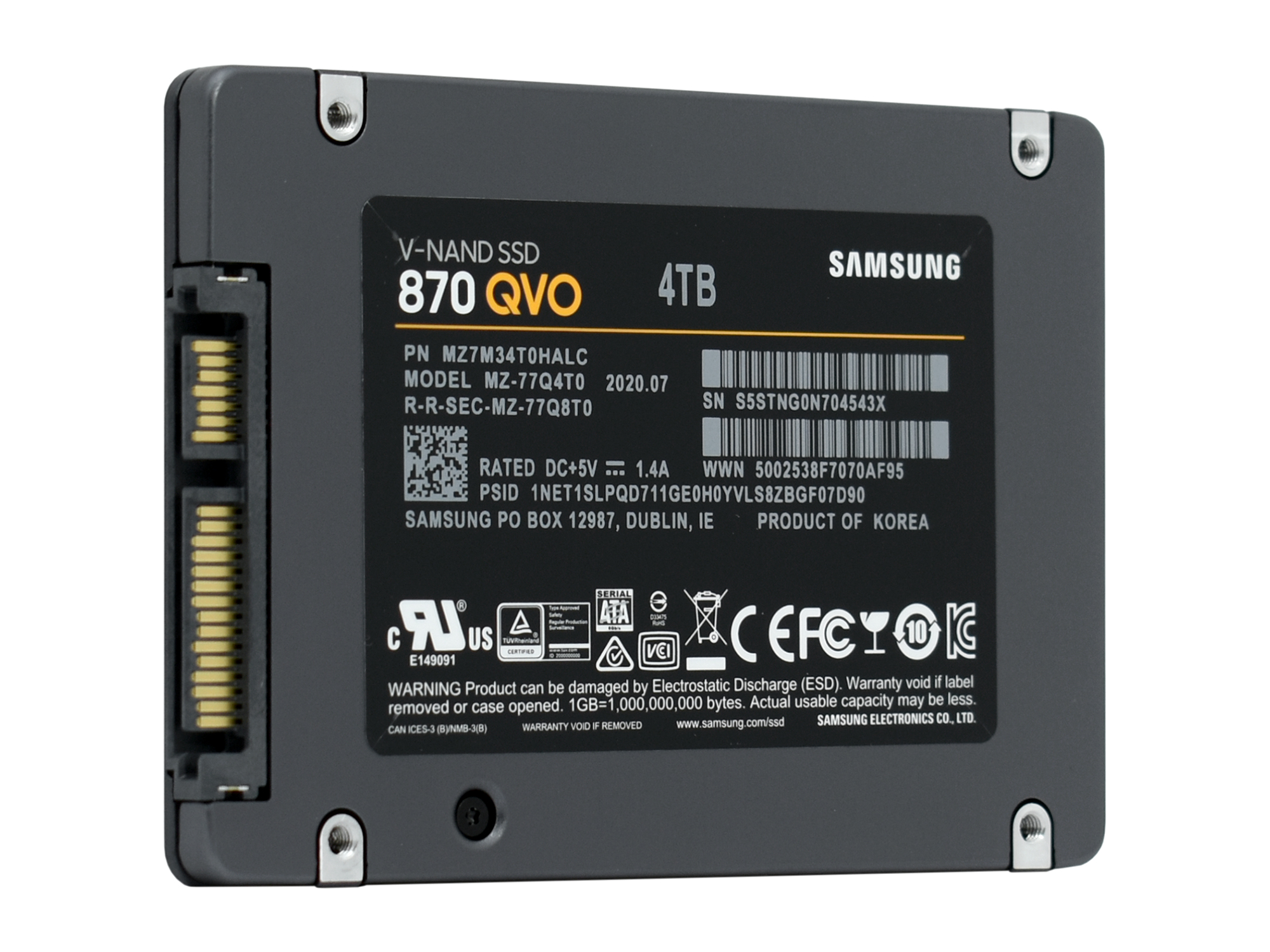 Твердотельный накопитель SSD Samsung 870 QVO, 4 TB SATA MZ-77Q4T0BW, SATA 6Gb/s, 7mm